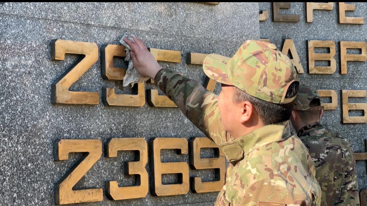 Құтқарушылар қыстан кейін, қаза тапқан жауынгерлердің есімдері жазылған Батырлар қабырғасын тазалады.
