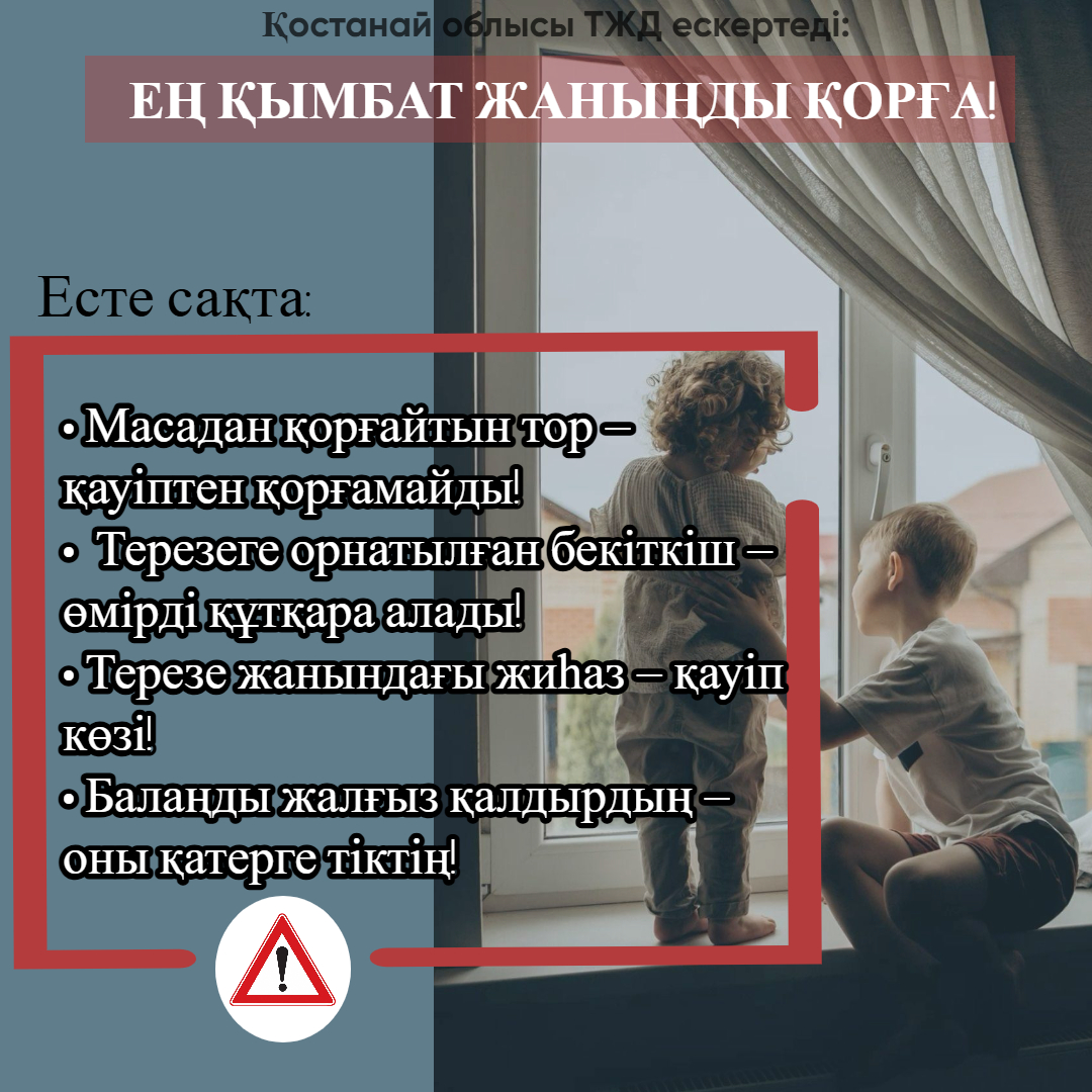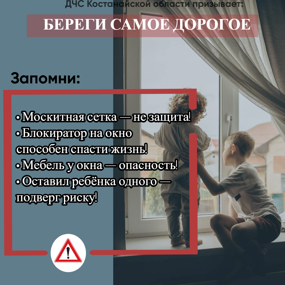 • Ашық терезесі бар бөлмеде баланы ешқашан жалғыз қалдырмаңыз, тіпті бір минутқа да!