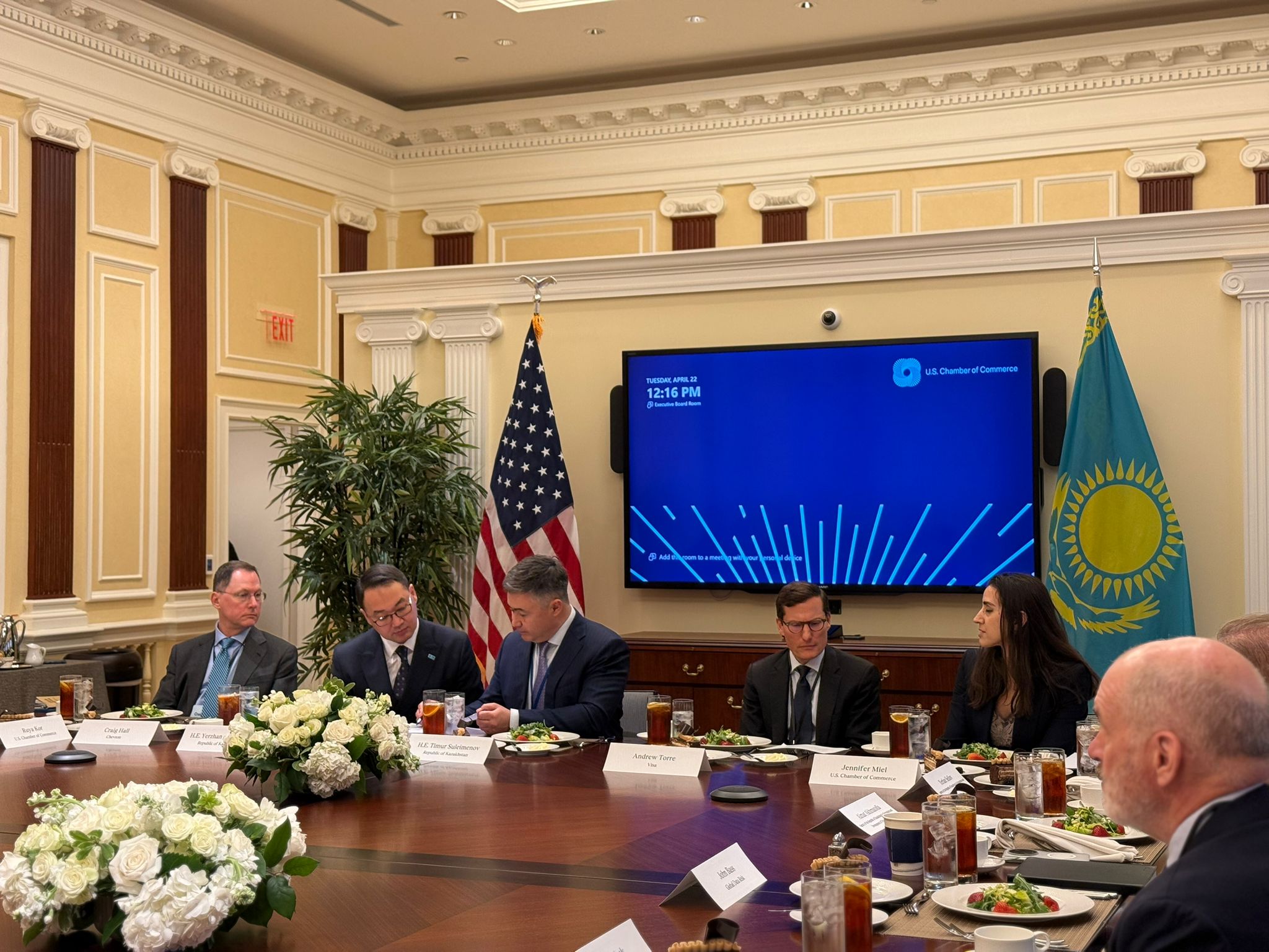 Вашингтон, 2025 жылғы 22 сәуір – Дүниежүзілік банк пен Халықаралық валюта қорының дәстүрлі Көктемгі сессиясы аясында ҚР-дың АҚШ-тағы Елшілігі мен АҚШ Сауда палатасы бірлесіп, екіжақты сауда-экономикалық байланыстарды тереңдетуге арналған дөңгелек үстел өткізді.