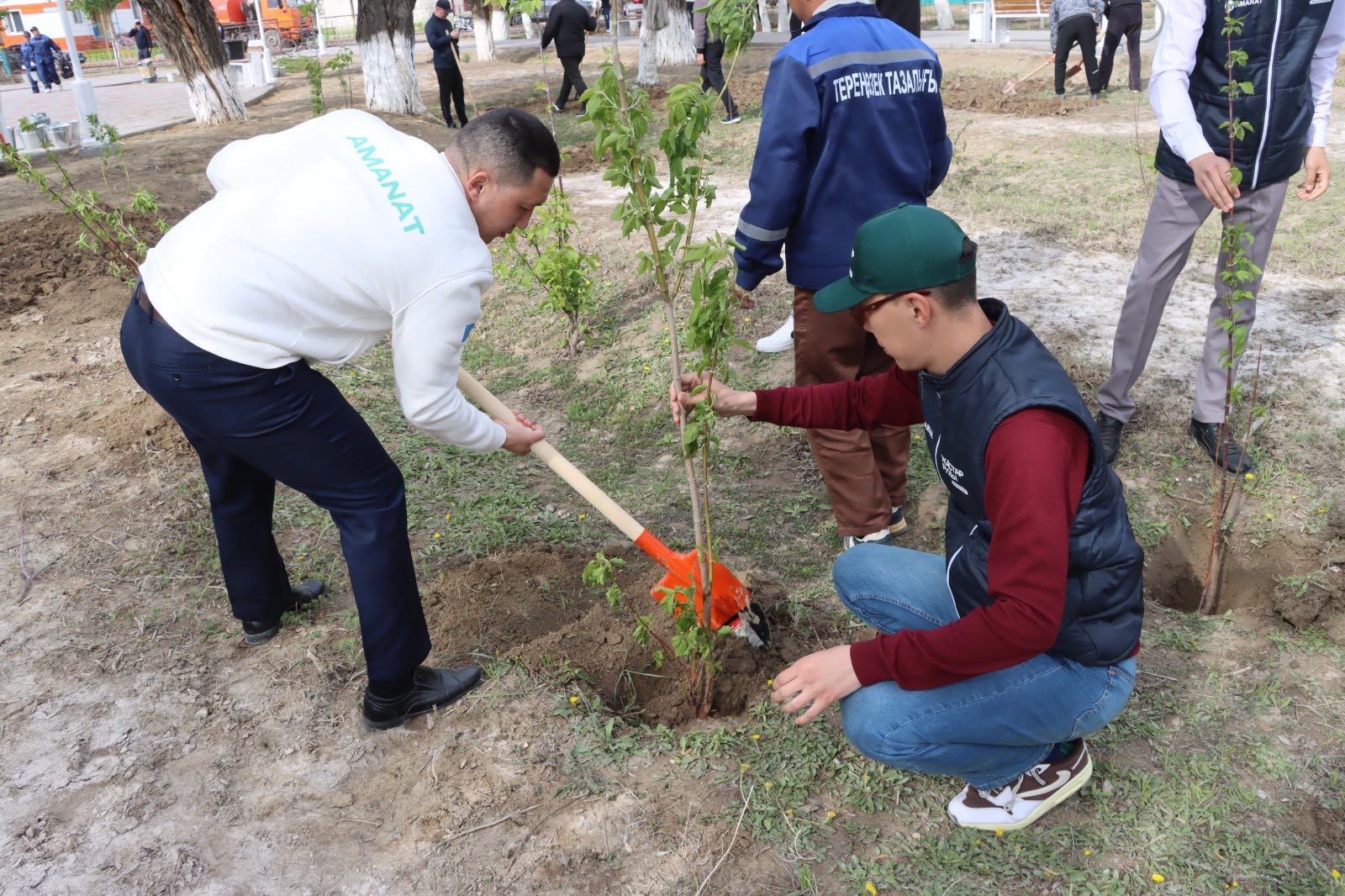 Мұнан соң аудан әкімі Берік Сәрменбаев пен «AMANAT» партиясының облыстық филиалының төрағасы Алмасбек Есмаханов «Таза Қазақстан» экологиялық акциясы аясында өткізілген «Таза Бейсенбі» акциясында тал егу іс-шарасына қатысты. Акция Тереңөзек кентіндегі «Тағзым» алаңында, «Құрметті азаматтар» аллеясында өтті. Акцияға қатысушылар Ұлы Жеңістің 80 жылдығына орай боздақтарға арналған ескерткішті тазалап, әрлеу, сырлау жұмыстарын жүргізді және “Тағзым алаңы” айналасын тазартты.