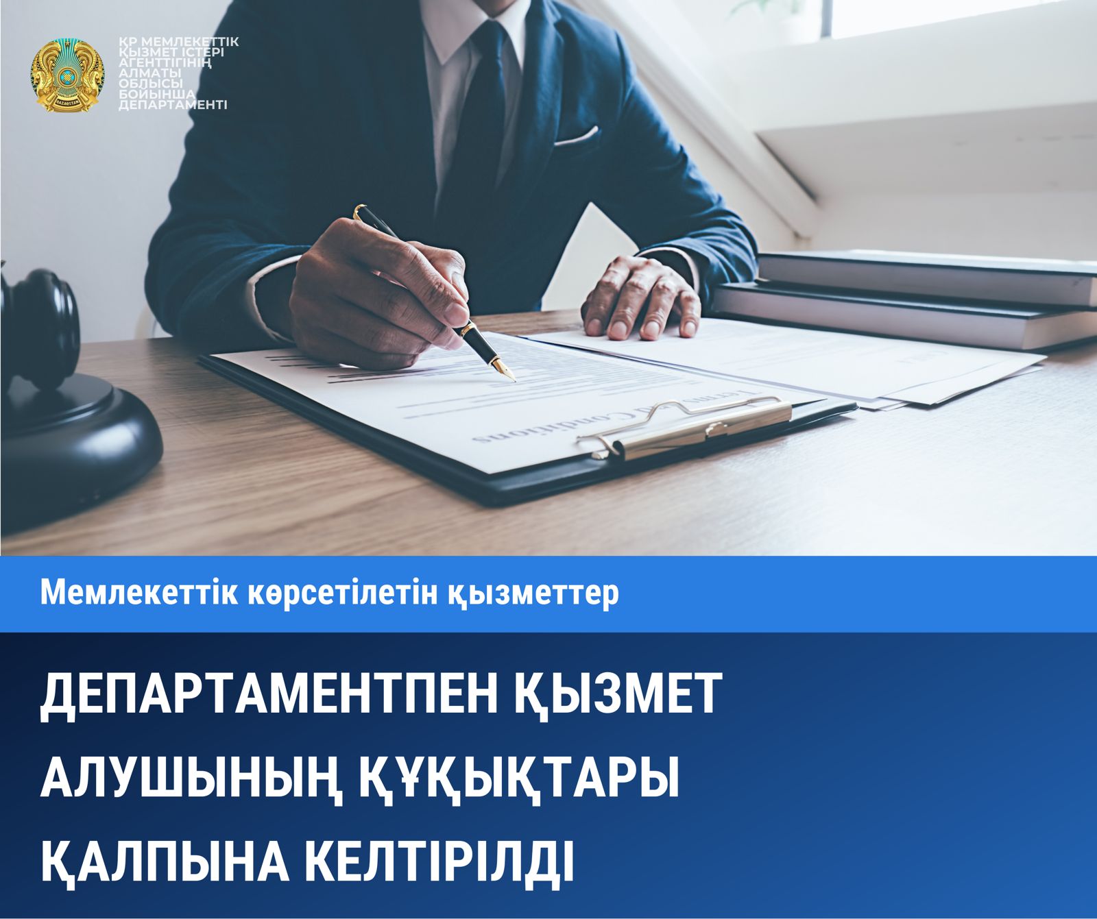 Департамент қызметінің басым бағыттарының бірі – халыққа сапалы мемлекеттік қызмет көрсетуді қамтамасыз ету. Бұл ретте, қызмет алушылардың құқықтарын қалпына келтіруге ерекше назар аударылады.