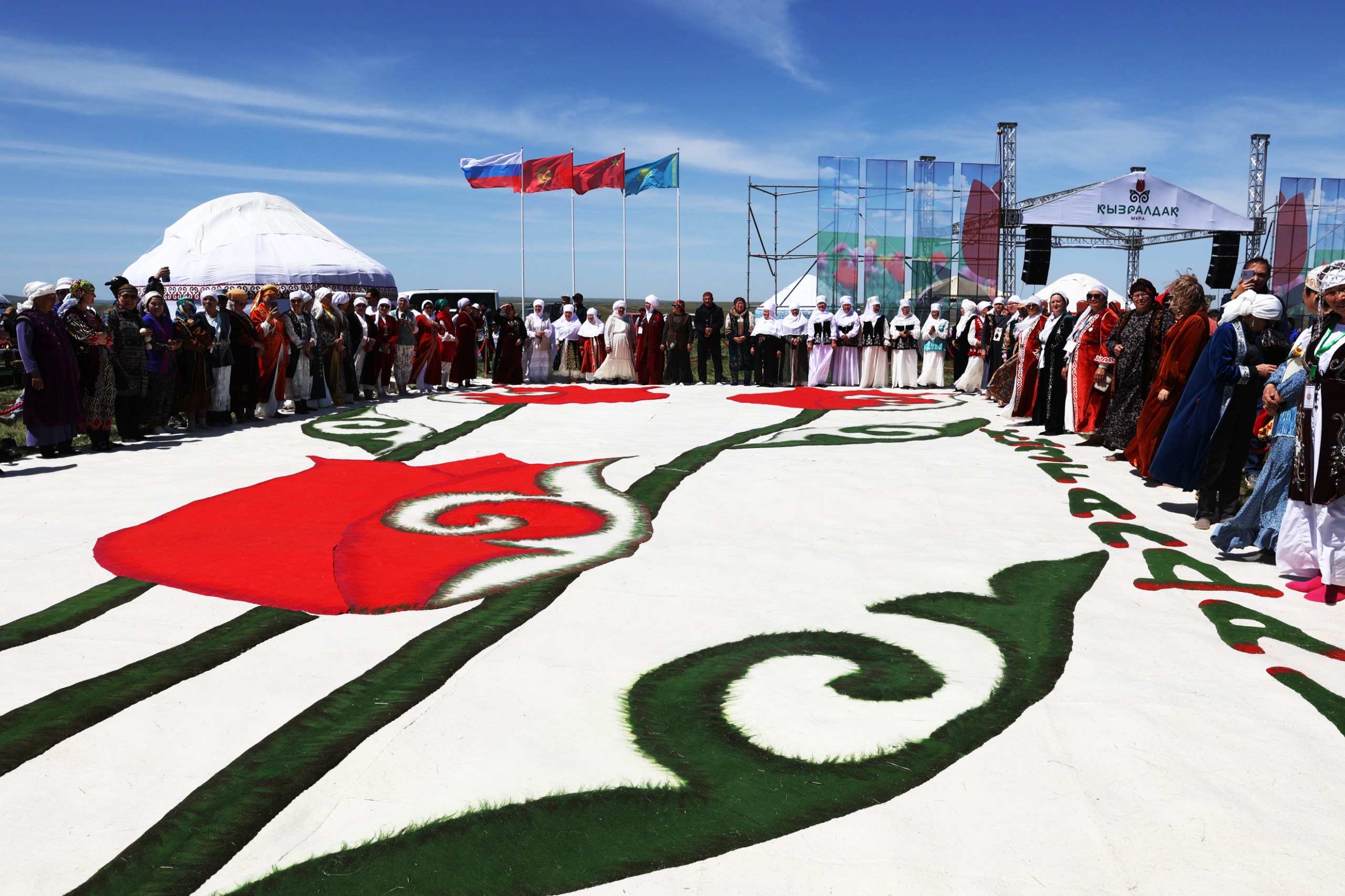 Халықаралық «Қызғалдақ мұра» фестивалі аясында жамбылдық қолөнершілер 200 шаршы метрлік киіз басып, Қазақстанның КИНЭС рекордтар кітабына енді.