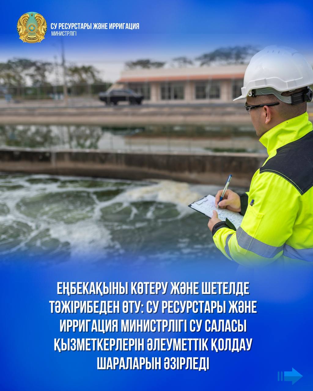 Су ресурстары және ирригация министрлігі су саласында жұмыс істейтін мамандарға әлеуметтік қолдау көрсету үшін бірқатар іс-шаралар әзірледі. Атап айтқанда, министрлік «Табиғи монополиялар туралы» заңға өзгерістер енгізуді ұсынды. Бұл өзгерістер су саласы қызметкерлерінің еңбекақысын электр және жылу саласында істейтін мамандардың жалақысымен теңестіруге бағытталған.