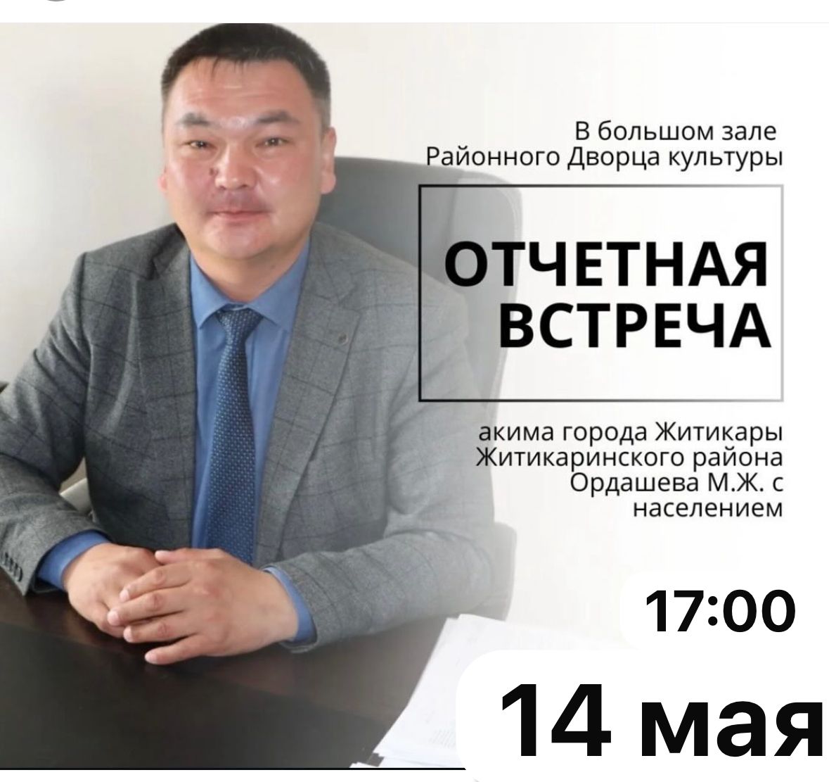 «Жітіқара ауданының Жітіқара қаласы әкімінің аппараты» ММ ҚР Президентінің «Әкімдердің халықпен кездесулерін өткізу туралы» Жарлығын орындау шеңберінде 2025 жылғы 14 мамырда сағат 17:00-де Жітіқара қаласы, 6 шағын аудан мекенжайында орналасқан Аудандық Мәдениет сарайының ғимаратында (үлкен зал) Жітіқара ауданы Жітіқара қаласының әкімі М.Ж. Ордашевтың халықпен есептік кездесуі өтетінін хабарлайды.