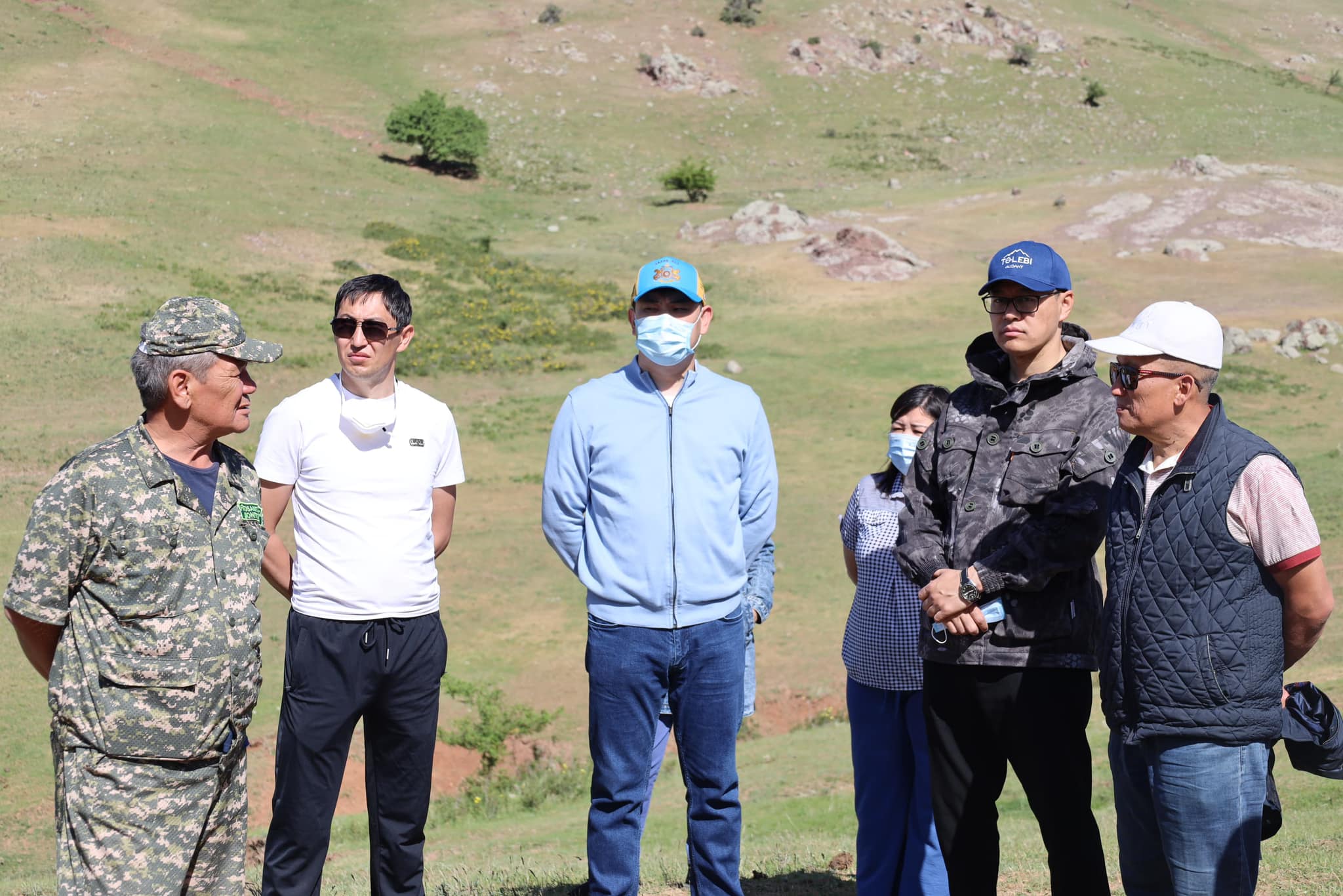 Төлеби ауданының әкімі Еркеғали Әлімқұлов аудан аумағындағы зиянкес шегірткелерді дәрілеу жұмыстарының барысымен танысты.