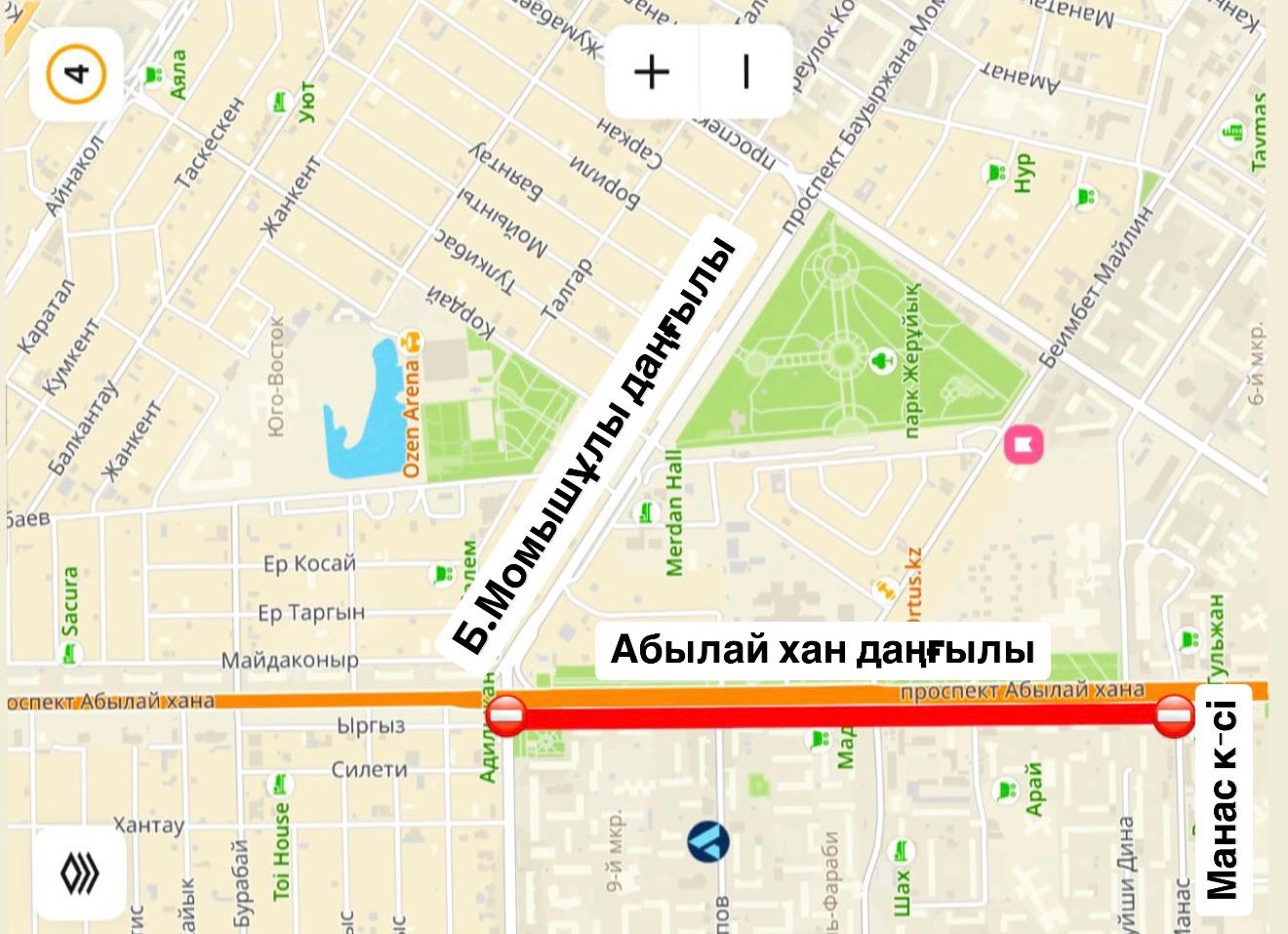 Осыған байланысты, 3-9 мамыр аралығында көрсетілген учаскеде қозғалыс ішінара жабылады. Бұл ретте көлік қозғалысы тараптардың бірі бойынша бір бағытта кезең-кезеңімен жүзеге асырылатын болады.