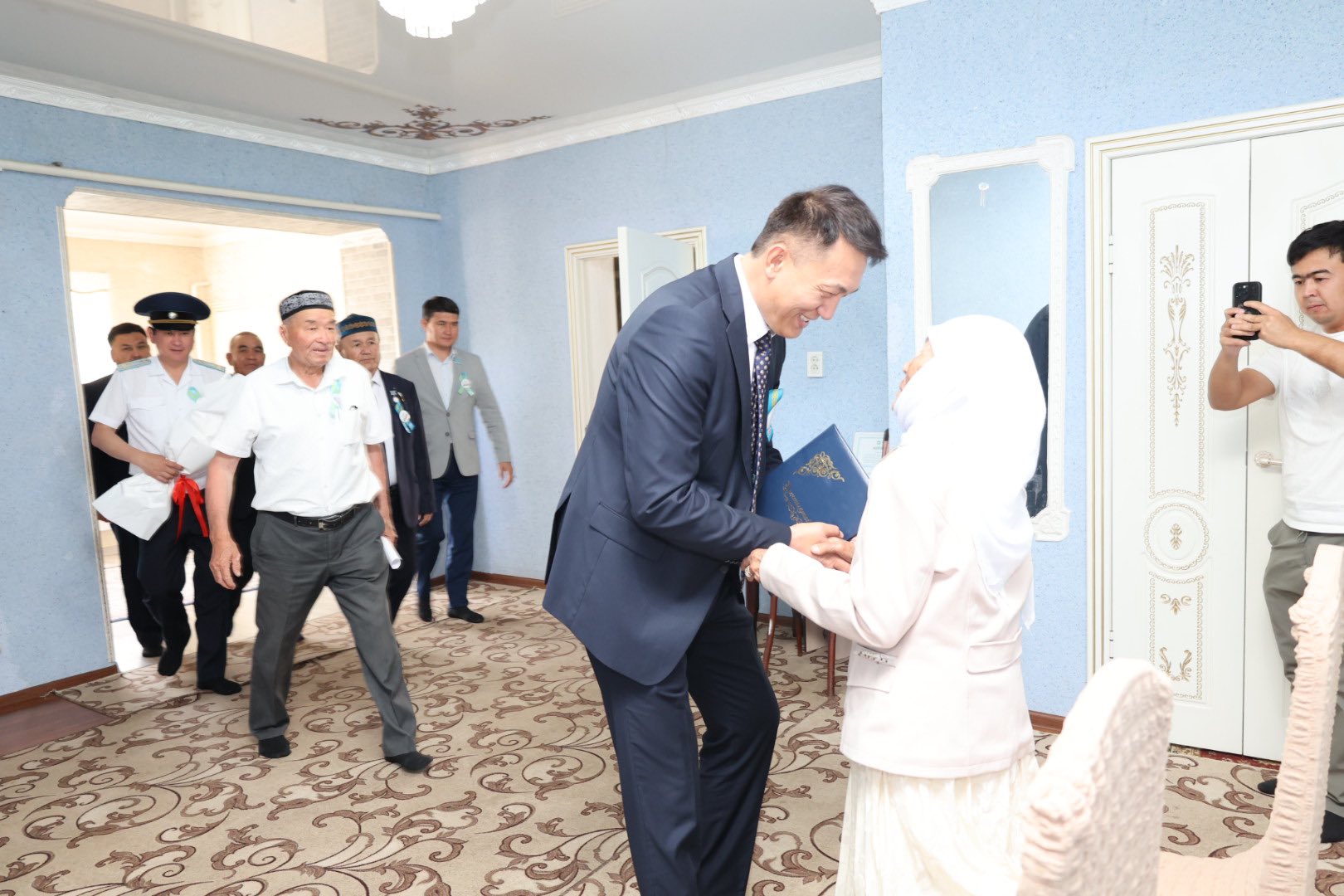 Қос ардагерге гүл шоқтары мен мерекелік сый-сияпаттар табысталып, шынайы алғыс пен зор құрмет көрсетілді. Қазақстан Республикасы Президентінің Жарлығымен тыл еңбеккерлеріне «Ұлы Отан соғысындағы Жеңіске 80 жыл» мерекелік медалі тапсырылды. Аудан басшысы ел үшін ерен еңбек еткен ардагерлерге ризашылығын білдіріп, олардың өмір жолы — елге үлгі, ұрпаққа өнеге екенін атап өтті.