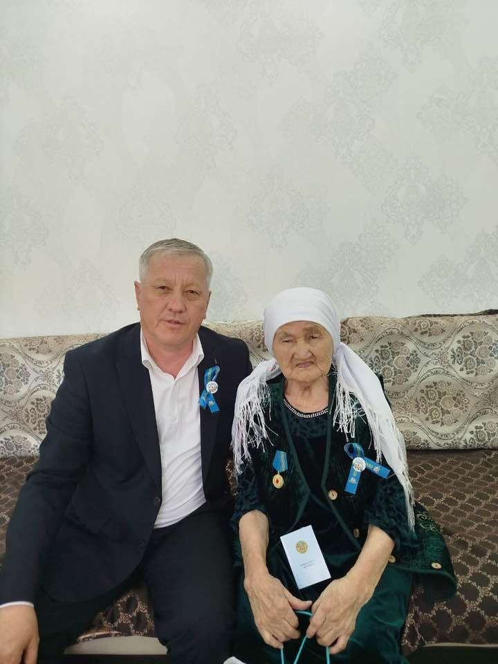 Ал, Орал қаласында тұратын Лима Жұмағұлованың медалін округ әкімі Айбол Жакиев арнайы алып барды.