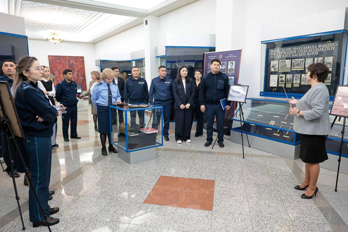 Іс-шара аясында ІІМ музейіндегі Ұлы Отан соғысының беттеріне арналған залда ерекше экспозиция ұйымдастырылды. Онда ішкі істер органдарының жауынгерлік жолынан сыр шертетін тарихи фотосуреттер мен сирек жәдігерлер көпшілік назарына ұсынылды. Әсіресе автомат ұстаған күйі айбатты көзқараспен алға ұмтылған Жеңіс жауынгерінің бейнесі – батырлық пен рухтың символындай әсер қалдырды.
