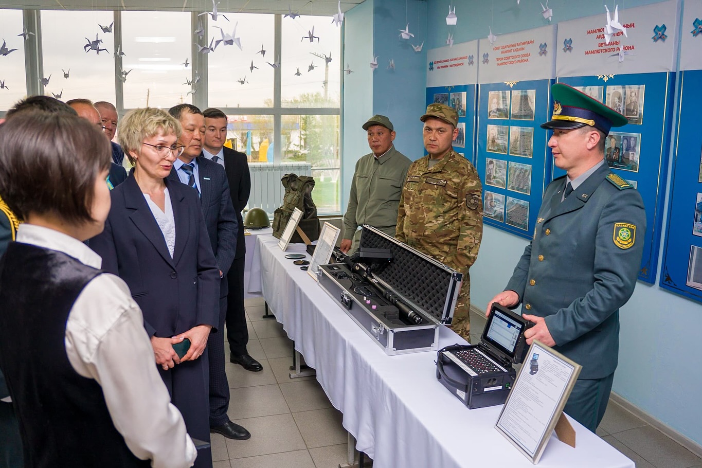 Мерекелік кештің аясында мәдениет үйінің фойесінде арнайы көрме ұйымдастырылды. Көрмеге аудандық кітапхана, төтенше жағдайлар бөлімі мен шекара қызметі қатысты. Келушілер батырлық, ерлік пен әскери борыш жайлы әдебиеттермен танысып, еліміздің қазіргі қорғаушыларының еңбегі туралы мағлұматтар алды.