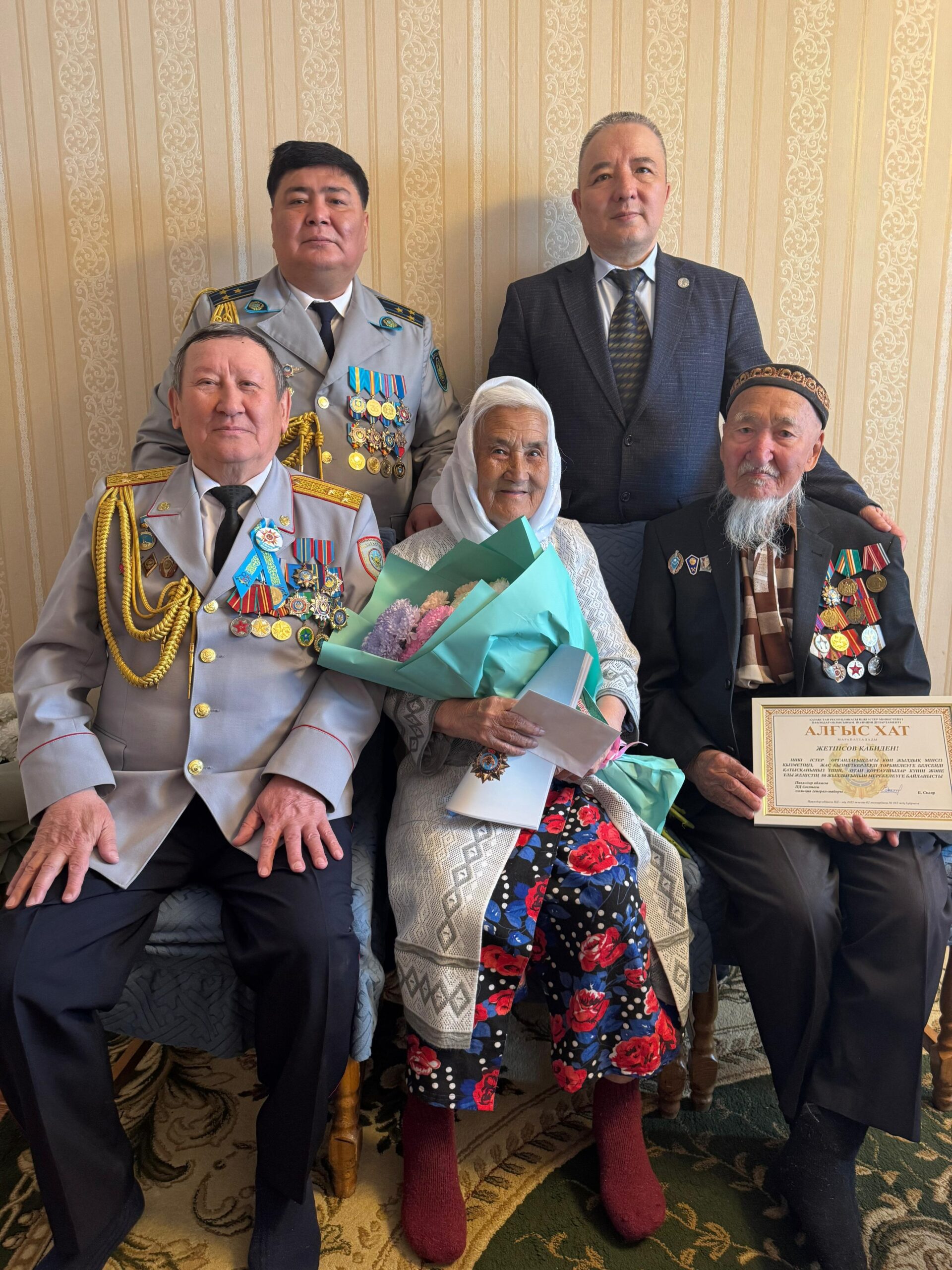 Аңызға айналған және ұлы мереке – Ұлы Отан соғысындағы Жеңістің 80 жылдығы қарсаңында Департамент бастығының орынбасары Жандос Орынбаев пен Ардагерлер кеңесінің төрағасы Бақберді Абраев ішкі істер органдарының тыл еңбеккерлерін құттықтады.