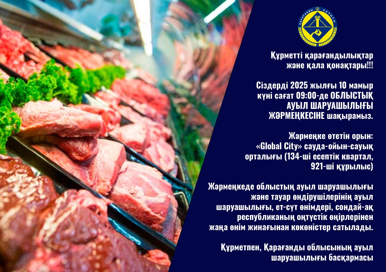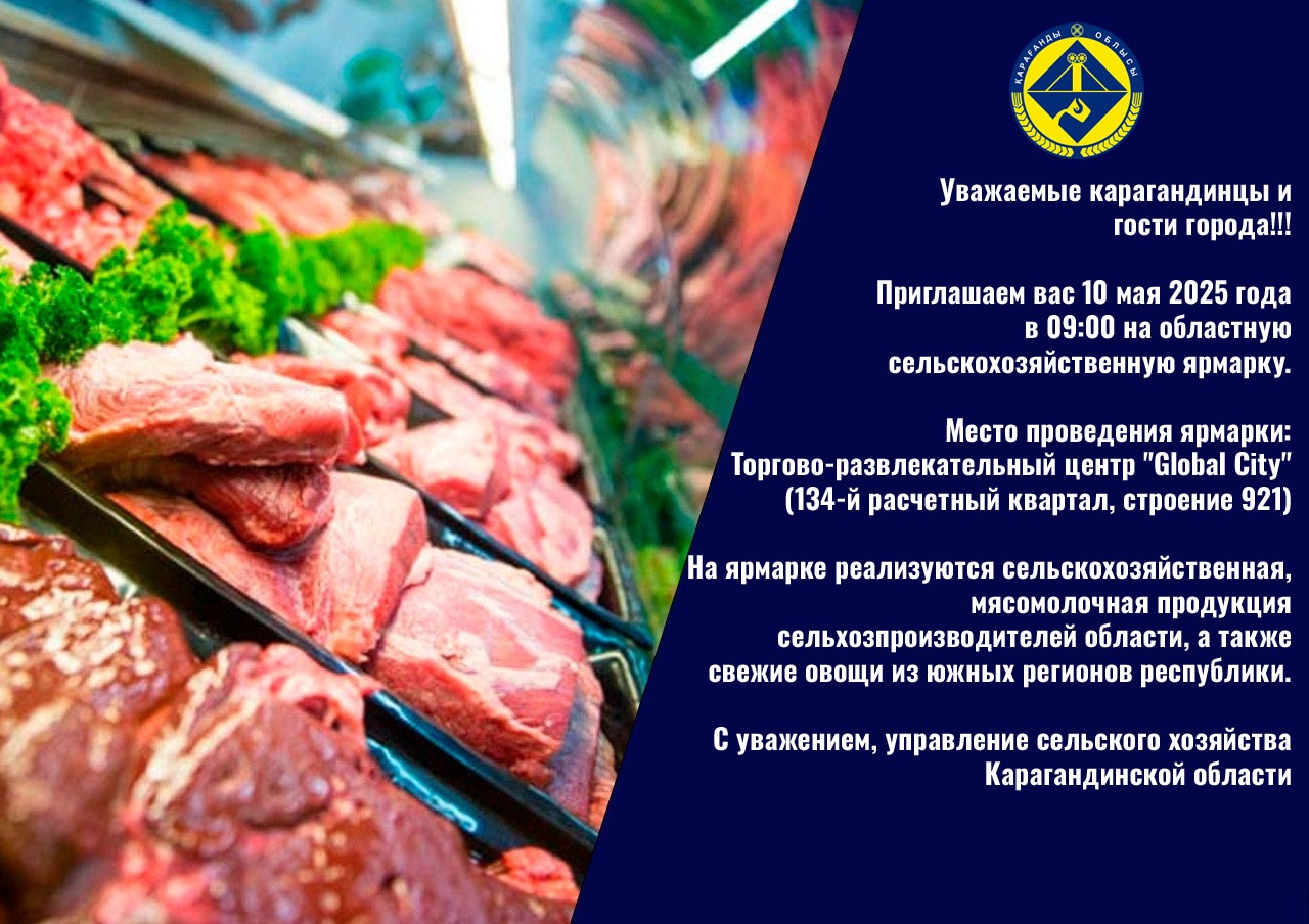 Қарағандылықтар мен қала қонақтарын 10 мамырда өтетін облыстық ауыл шаруашылық жәрмеңкесіне шақырады. Сауда сағат 09:00 басталады.