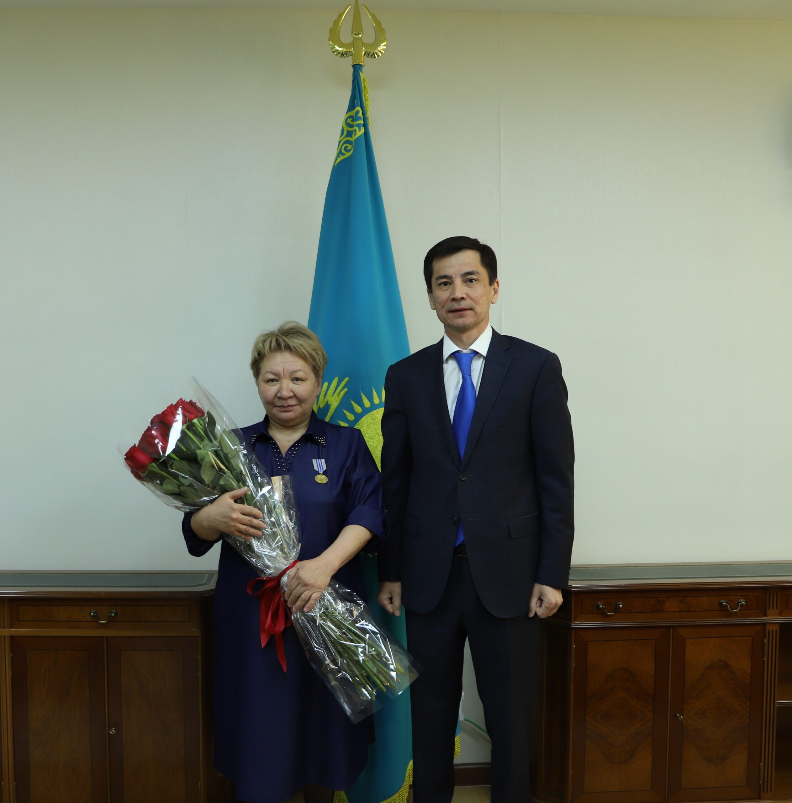 Министрлікте қызмет істеген уақытында өзін білікті әрі кез келген жүктелген міндетті атқара алатын адал және жауапты қызметкер ретінде таныта білді. Осы еңбегі зая кетпей «Еңбек ардагері» медалімен марапатталғанын айта кетейік.