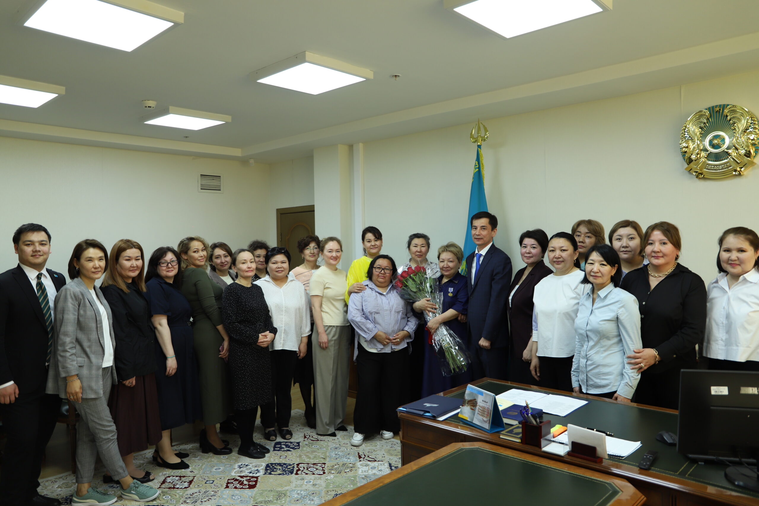 Ведомство басшылығы мен ұжым атынан ҚР Қаржы министрлігінің аппарат басшысы Ерғали Егемберды Меруерт Абылаеваға ұзақ жылғы абыройлы қызметі мен өз ісіне деген адалдығы үшін ризашылығын жеткізіп, құрмет көрсетті.