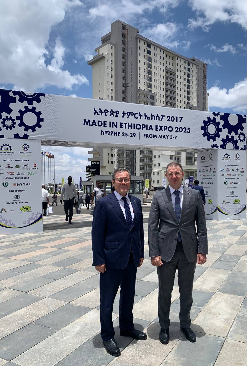 Аддис-Абеба, 2025 жылғы 5 мамыр – Қазақстан Елшілігінің Эфиопиядағы өкілдері «Ethiopian Tamrit Expo 2025» атты үшінші халықаралық көрменің ашылу салтанатына қатысты. Аддис-Абебаның Жаңа халықаралық конференц-орталығында өткен іс-шара ұлттық бәсекеге қабілеттілікті арттыруға және Эфиопияда өндірілген тауарларды ілгерілетуге бағытталған озық технологияларды көрсетті.