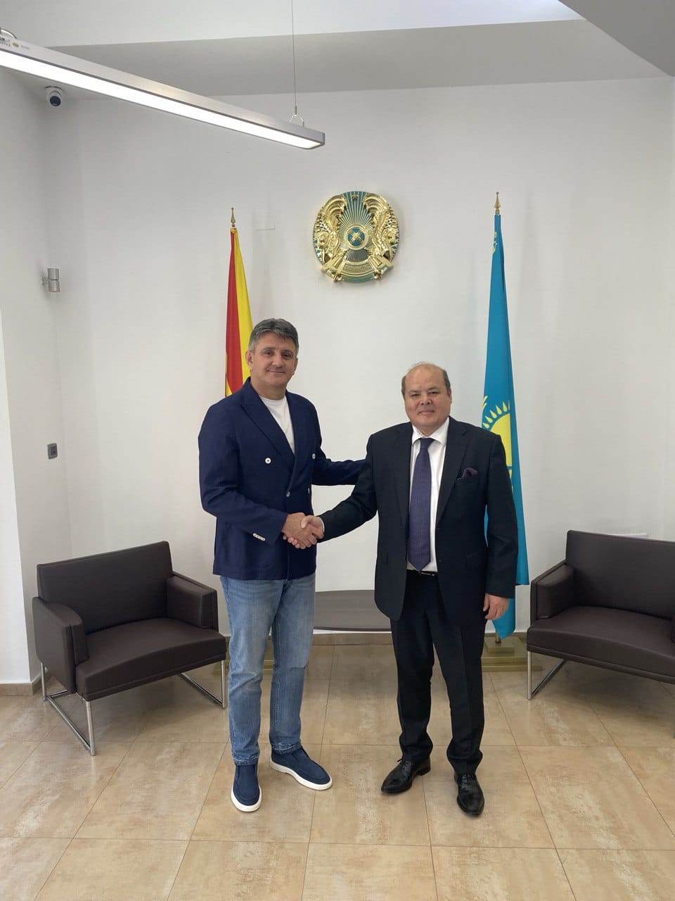 Скопье, 2025 жылғы 2 мамыр – Қазақстанның Солтүстік Македониядағы Елшісі Сатыбалды Буршаков Солтүстік Македония Футбол федерациясының президенті Масар Омерагичпен кездесті.