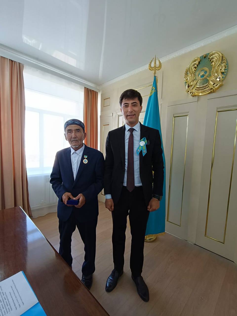 Ұлы Жеңістің 80 жылдығы қарсаңындағы осынау айтулы шараның ерекшелігіне тоқталған Қайрат Нұржанұлы ерен еңбек иелерінің ел игілігіне қосқан үлестеріне баға беріп, мемлекеттік қызметтің ардагері Жолдыбай Батырниязовтың өңіріне ҚР «Ауыл шаруашылығы ардагерлер кеңесі», қоғамдық бірлестігінің «Құрметті ардагер» төсбелгісін тақты.