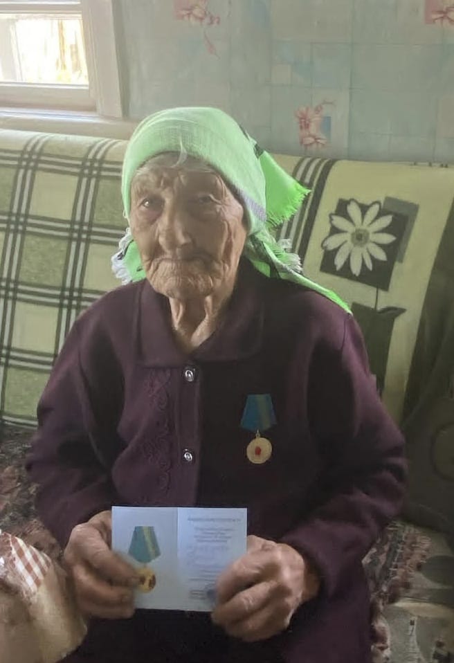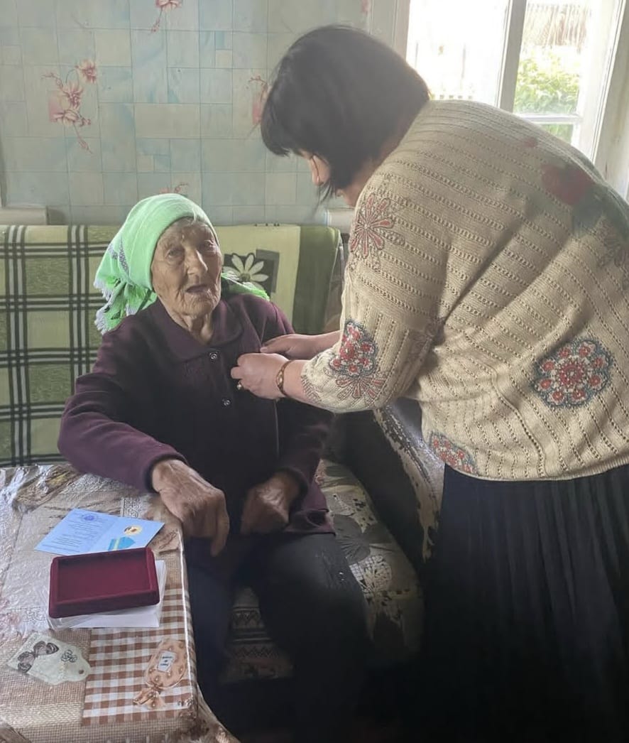 Бүгін Мусавирова Евдокия Нестеровнаға тыл еңбеккері ретінде мерейтойлық медаль салтанатты түрде табысталды.
