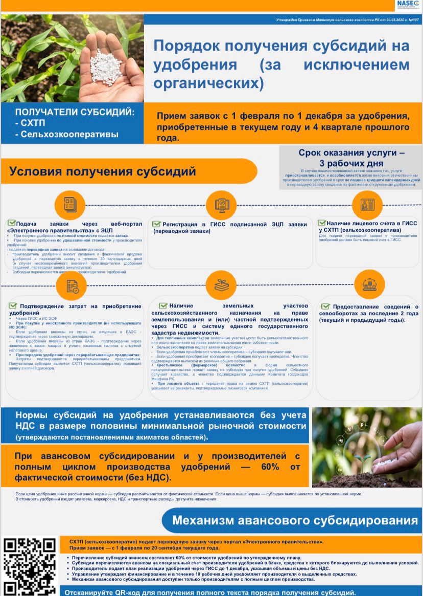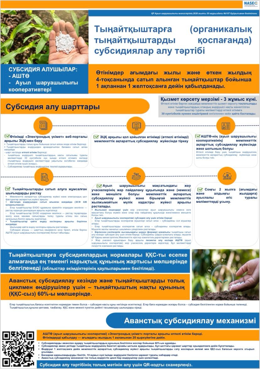 Өтінімдер ағымдағы жылы және өткен жылдың 4-тоқсанында сатып алынған тыңайтқыштар бойынша 1 ақпаннан 1 желтоқсанға дейін қабылданады.