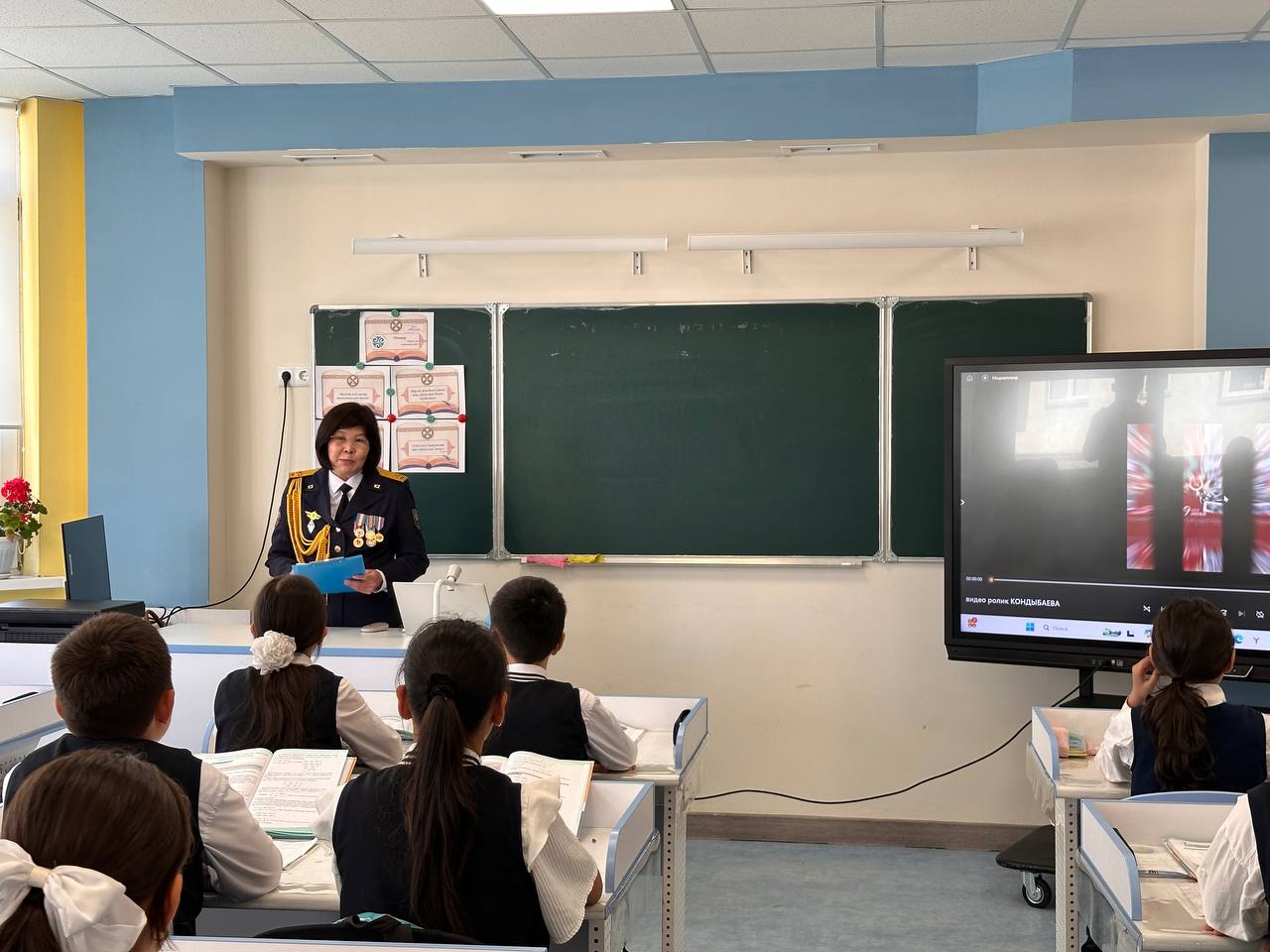 Еңбекшіқазақ ауданы ТЖБ қызметкерлері оқушыларға ата бабаларымыздың ерлігі  мен ұрпақтар сабақтастығы туралы айтып берді.