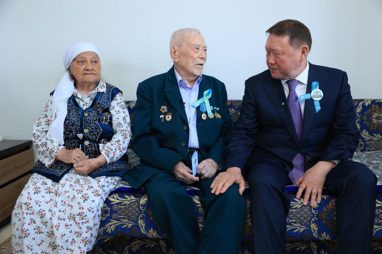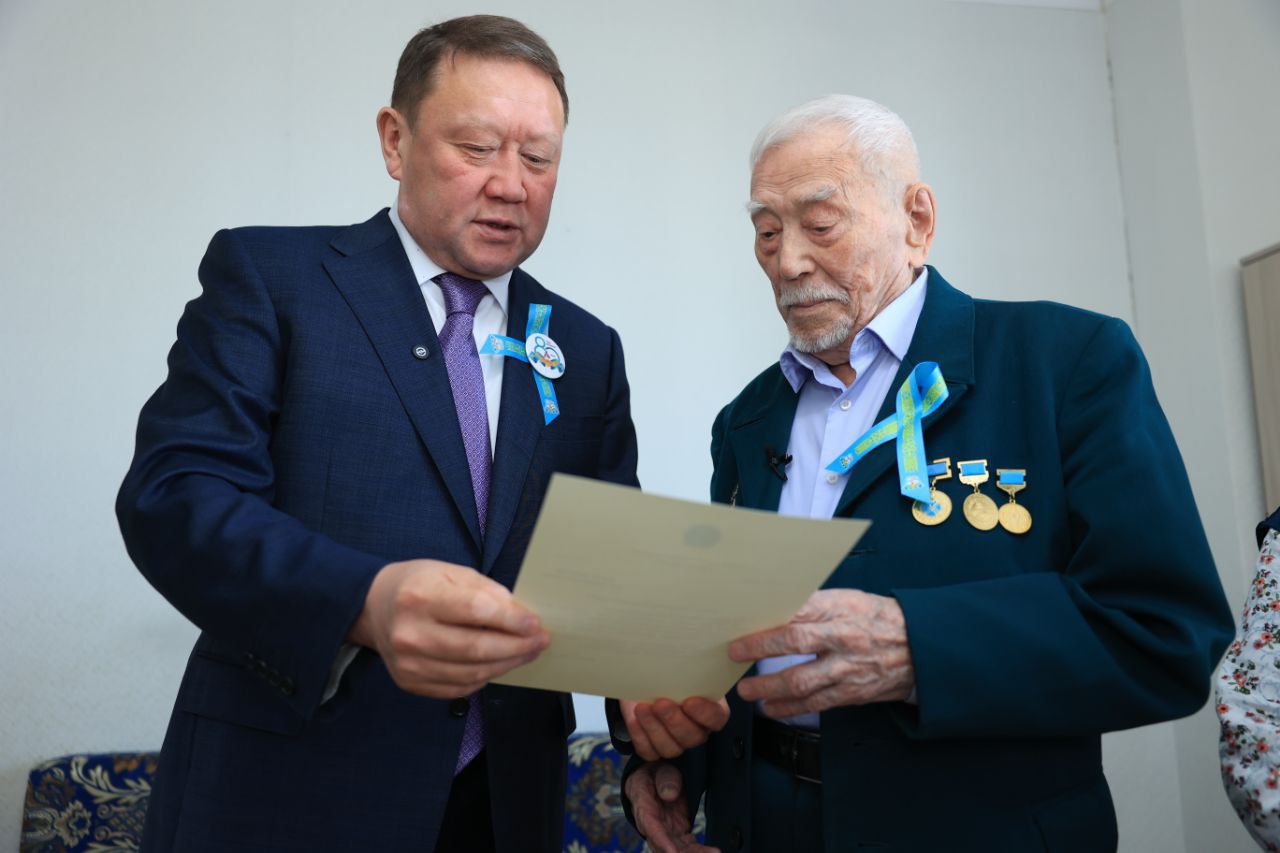 — Сіз – халқымыздың тірі шежіресісіз. Ерлігіңіз ұрпаққа шабыт береді әрі бейбіт өмір мен еркіндіктің қаншалықты қымбат екенін еске салады. Соғыстан кейін Сіз мәдениет, білім және әдебиет салаларының дамуына үлкен үлес қостыңыз. Сіздің өмір жолыңыз – Отанға адал қызмет етудің жарқын үлгісі, – деді Құмар Ақсақалов.