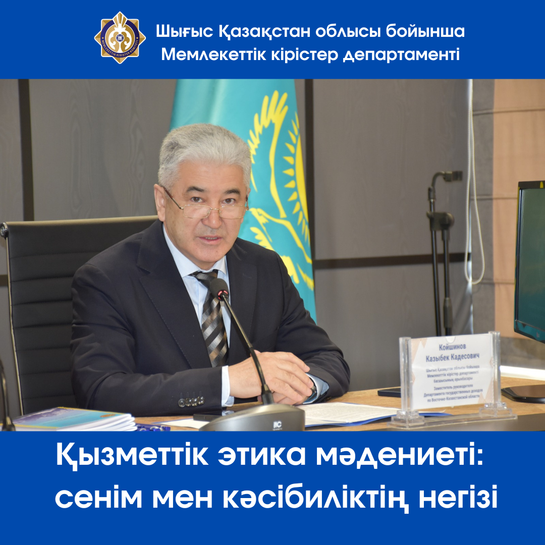 Оны Шығыс Қазақстан облысы бойынша Мемлекеттік кірістер департаменті басшысының орынбасары-Әдеп жөніндегі уәкіл Койшинов Казыбек Кадесович өткізді.
