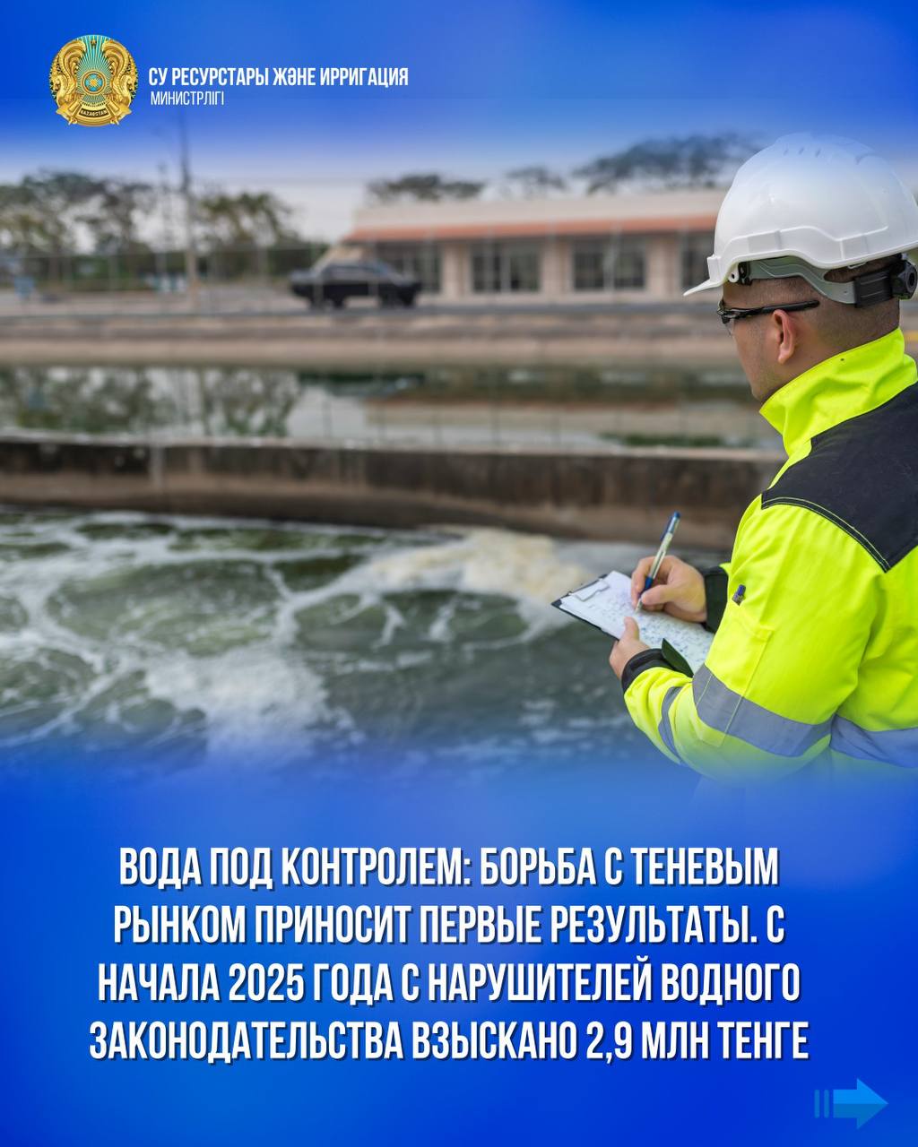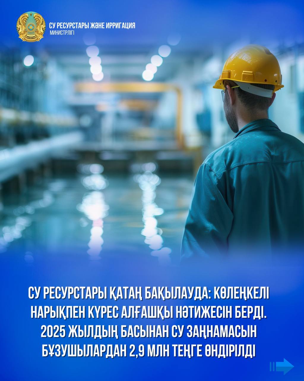 Ал 2025 жылдың басынан бері суды заңсыз пайдалану фактілері бойынша жалпы сомасы 6,4 млн теңгеге 35 әкімшілік айыппұл салынды. Оның ішінде жоспардан тыс тексеру нәтижелері бойынша 1,4 млн теңге сомасына 12 әкімшілік айыппұл салынды, ал құқық қорғау және мемлекеттік органдардан түскен материалдар бойынша 5 млн теңгеге 23 әкімшілік айыппұл салынды.