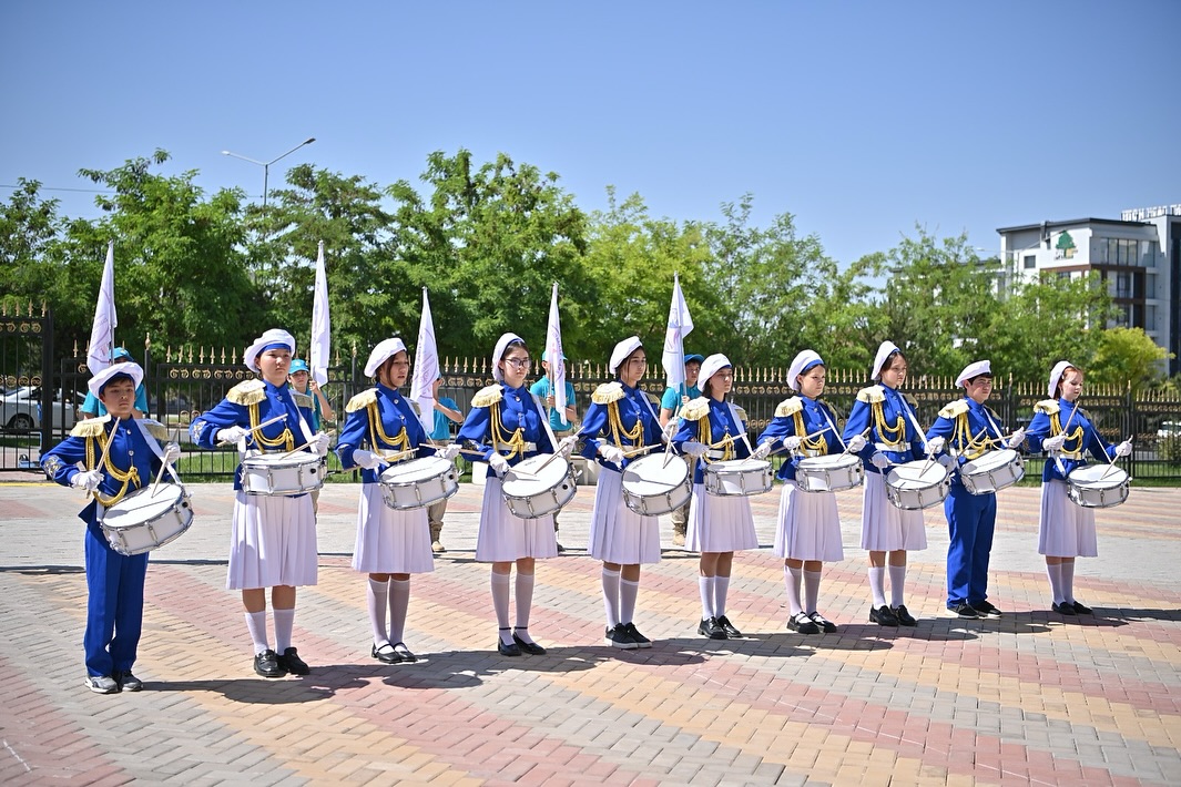 Оқушылардың сапқа тұруынан басталған бұл әсерлі күн, патриоттық рух пен өнерге толы болды.