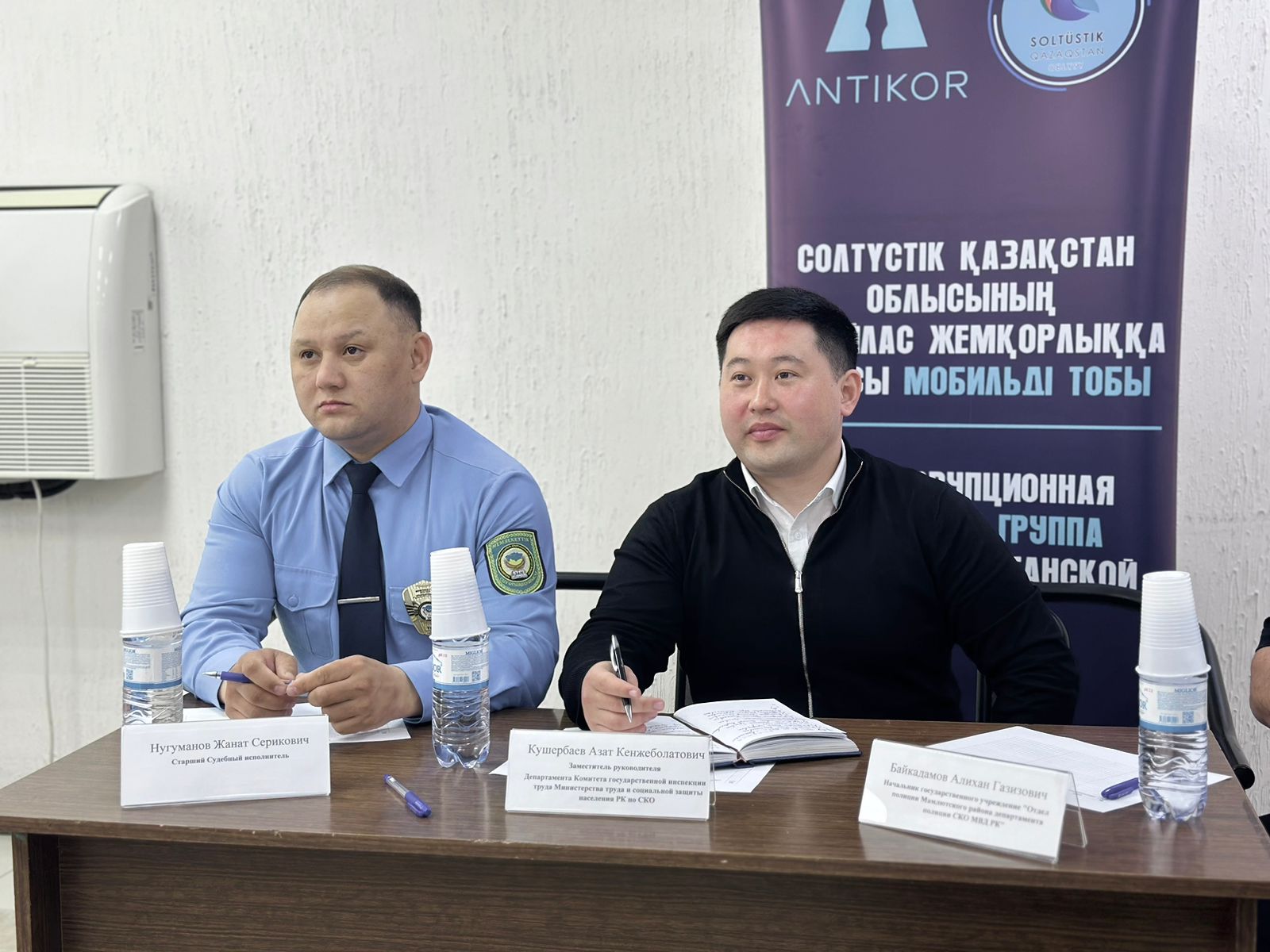 2025 жылғы 13 мамырда Солтүстік Қазақстан облысы, Мамлют ауданы, Мамлют қаласының «Amanat» партиясының ғимаратында, Халыққа қызмет көрсету орталығында және Мамлют аудандық емханасында сыбайлас жемқорлыққа қарсы мобильдік топтың жұмысы шеңберінде ҚР ЕХӘҚМ Мемлекеттік еңбек инспекциясы комитетінің СҚО бойынша департамент басшысының орынбасары А.К. Көшербаевпен еңбек заңнамасы аясында халыққа заңгерлік кеңес берілді.