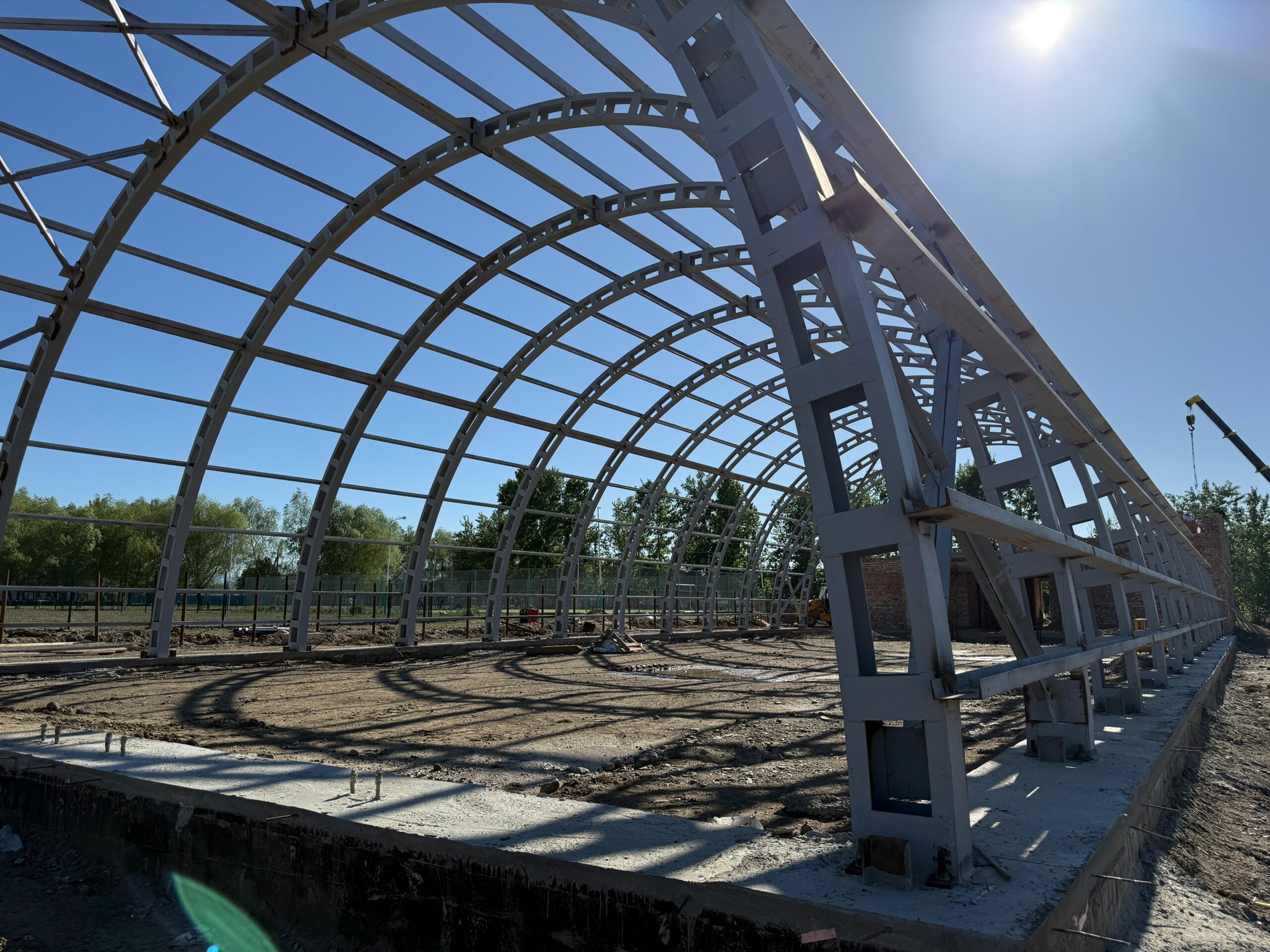 Құрылыс дайындығы 37% құрайды. Қазіргі уақытта құрылыс алаңында металл конструкцияларды монтаждау, сондай-ақ кірпіш қалау жұмыстары жүргізілуде. Құрылысты аяқтау 2025 жылдың желтоқсанына жоспарланған.