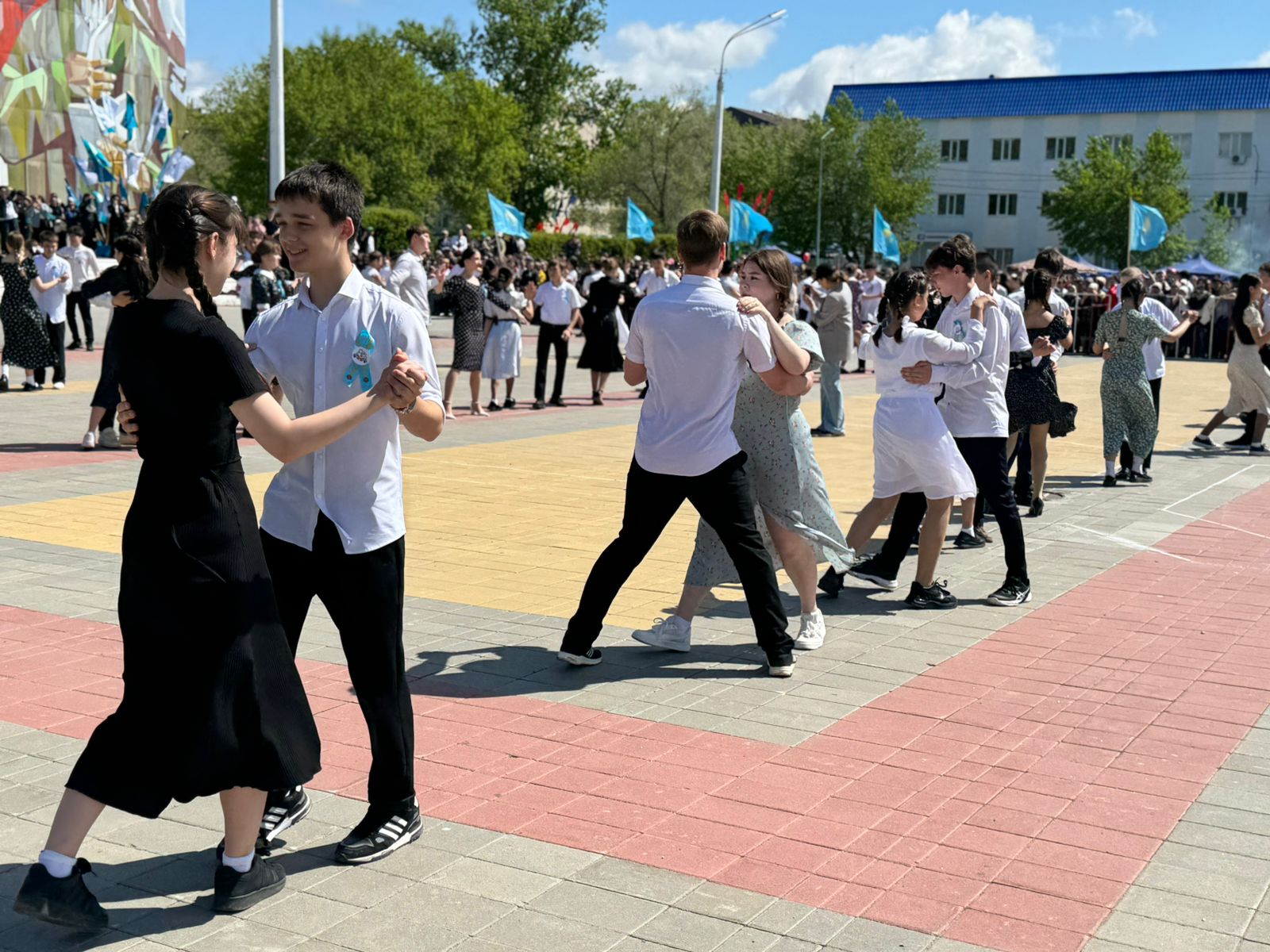 Сағат 12.00-де Тәуелсіздік алаңында «Ұлы Отан соғысы жылдардағы қазақстандықтар» оқиғалар қойылымы мен «Желбірей бер, Жеңіс туы, мәңгілік» соғыс жылдардағы әндер орындауымен мерекелік концерті болып өтті.
