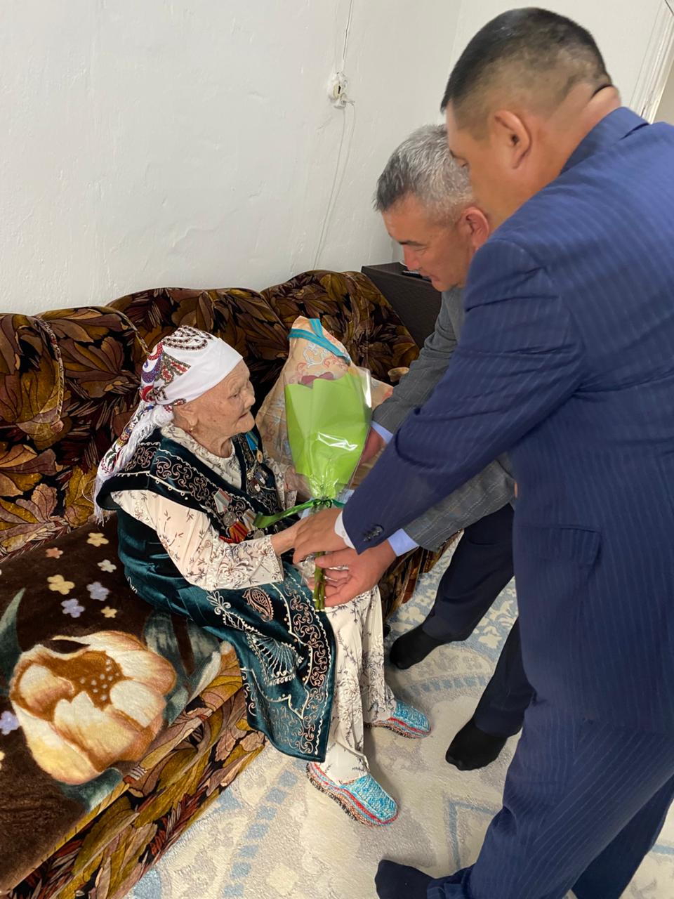 Мұсабек ауылдық округінде Ұлы Отан соғысының 80 жыл толуына орай, тыл еңбеккерлеріне Мамышева Зоя апамызды аудан әкімінің орынбасары Е.Шалқыбеков және округ әкімі Е.Тантыбай құттықтап,медаль табыс етті.