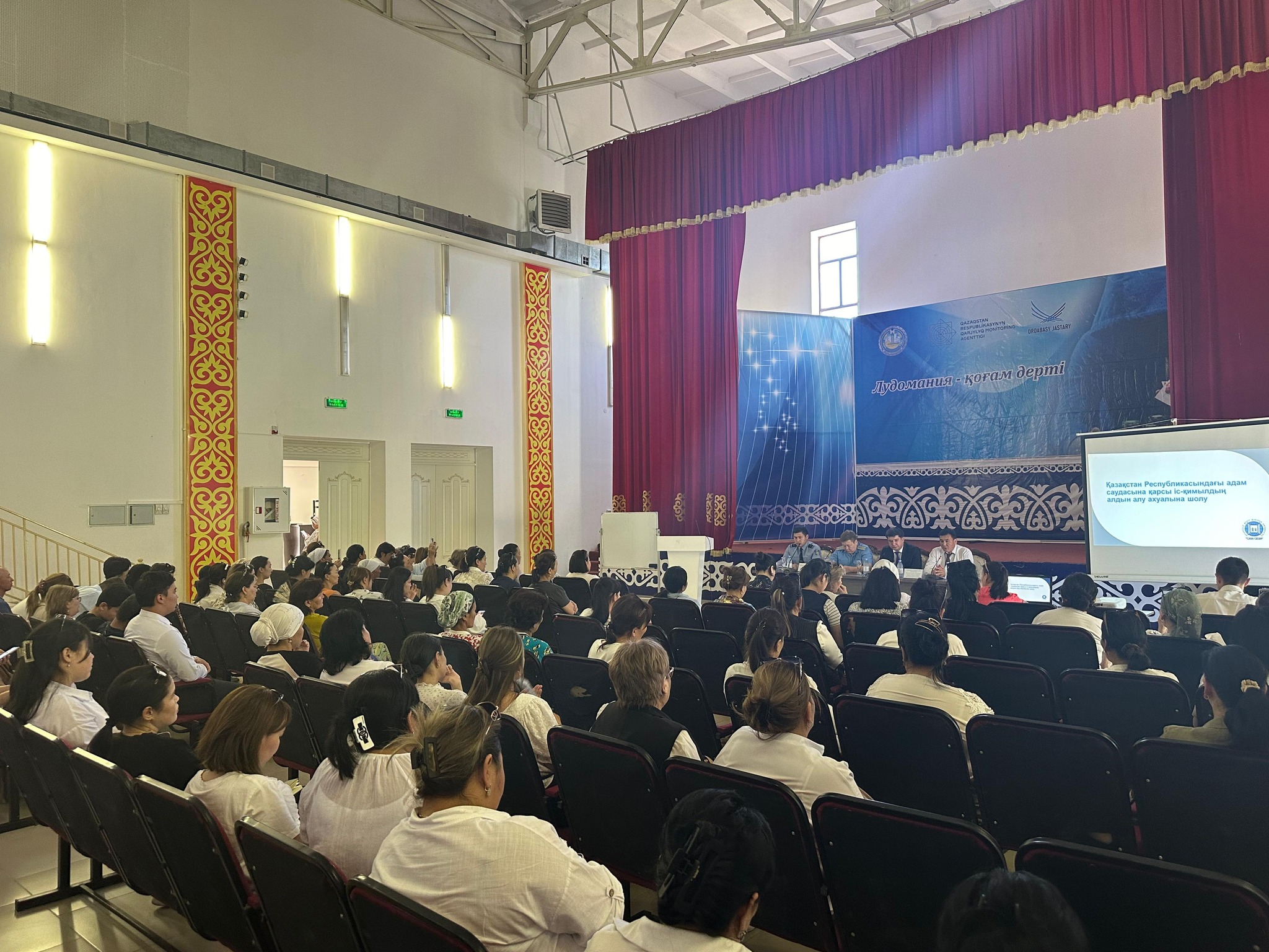 🔹 Аталмыш іс-шараға Департаменттің бас маман-мемлекеттік еңбек инспекторы Сихымбай Дінмұхамед Иглікұлы қатысып, еңбек қауіпсіздігі мен еңбекті қорғау саласы арқылы мәжбүрлі еңбектің құрбандары болғандарға және оның алдын-алу, болдырмауға байланысты құқықтық көмек көрсету мақсатында ҚР Еңбек кодексінің заңнамалық талаптарына сәйкес түсіндірме жұмыстарын жүргізді.