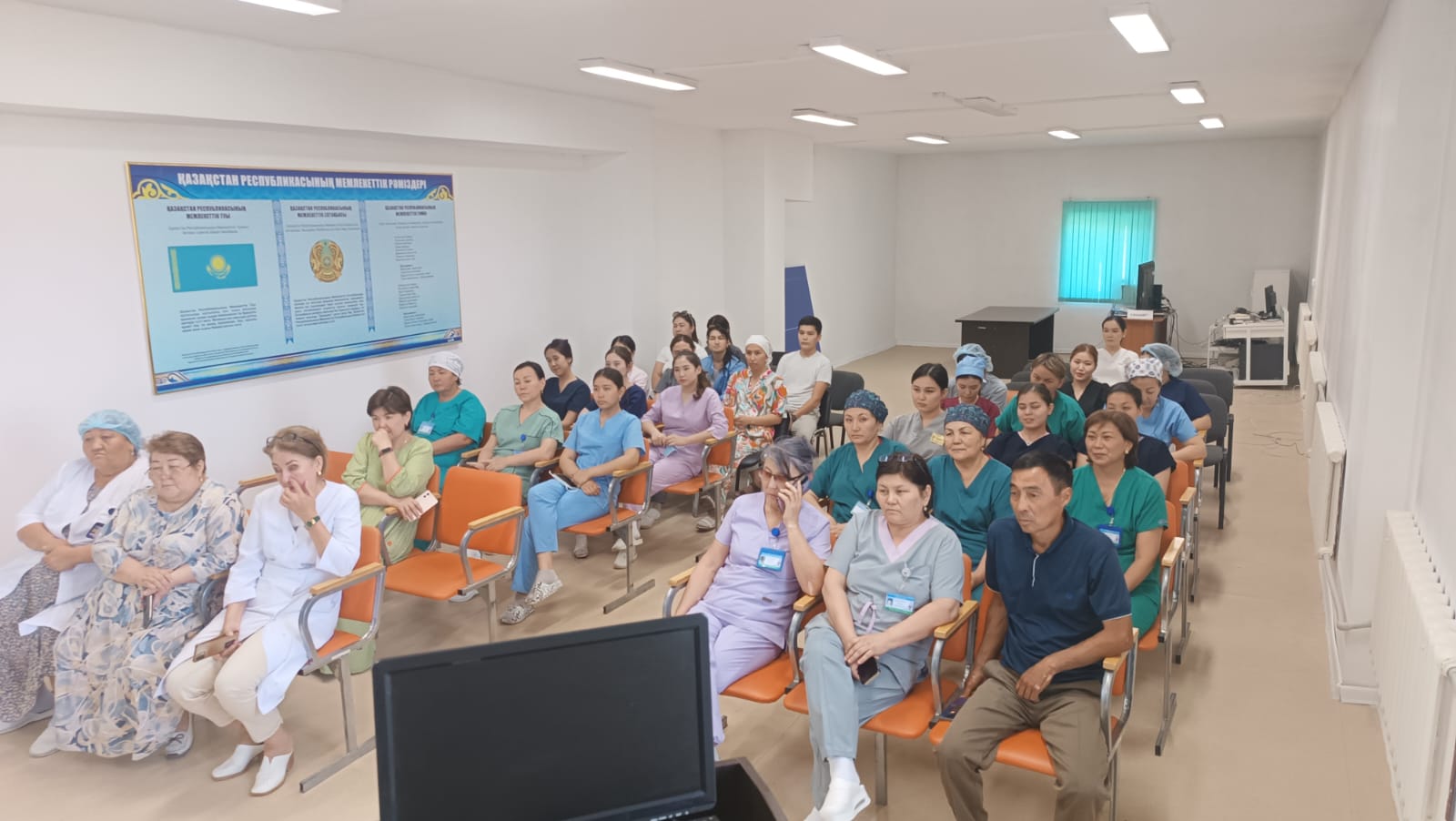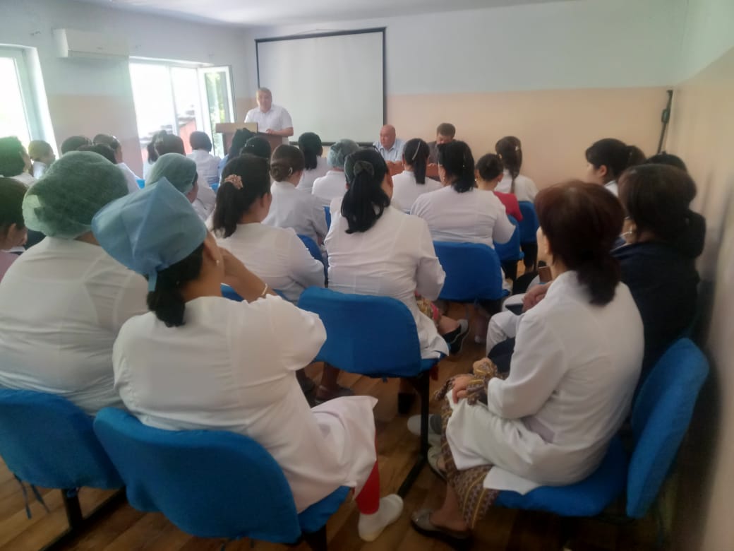 📌 Кездесу барысында Департамент басшысының орынбасары Берік Серікбайұлы орталық аурухана қызметкерлеріне кездесудің мақсаты мен міндетін түсіндіре отырып, Қазақстан Республикасы Еңбек кодексінің заңнамалық талаптарына қатысты еңбек қауіпсіздігі және еңбекті қорғау мәселелерінің басым бағыттарын тарқатып өтті.