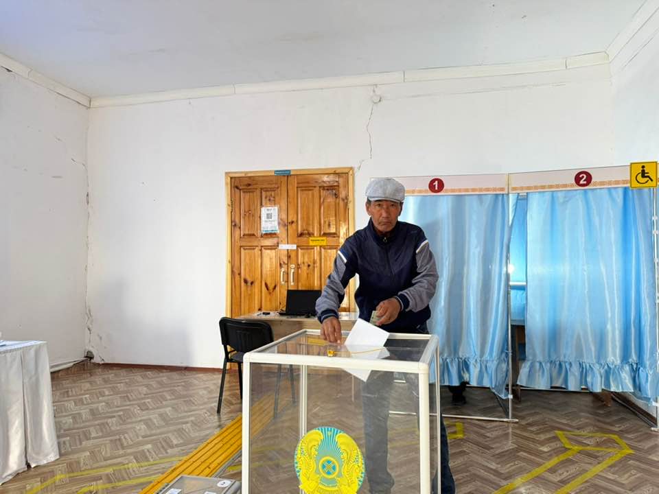 Қазір жәшікке алғашқы бююлетеньдер түсе бастады. Бірінші болып ауыл тұрғыны Батыр Өтешев дауыс берді.