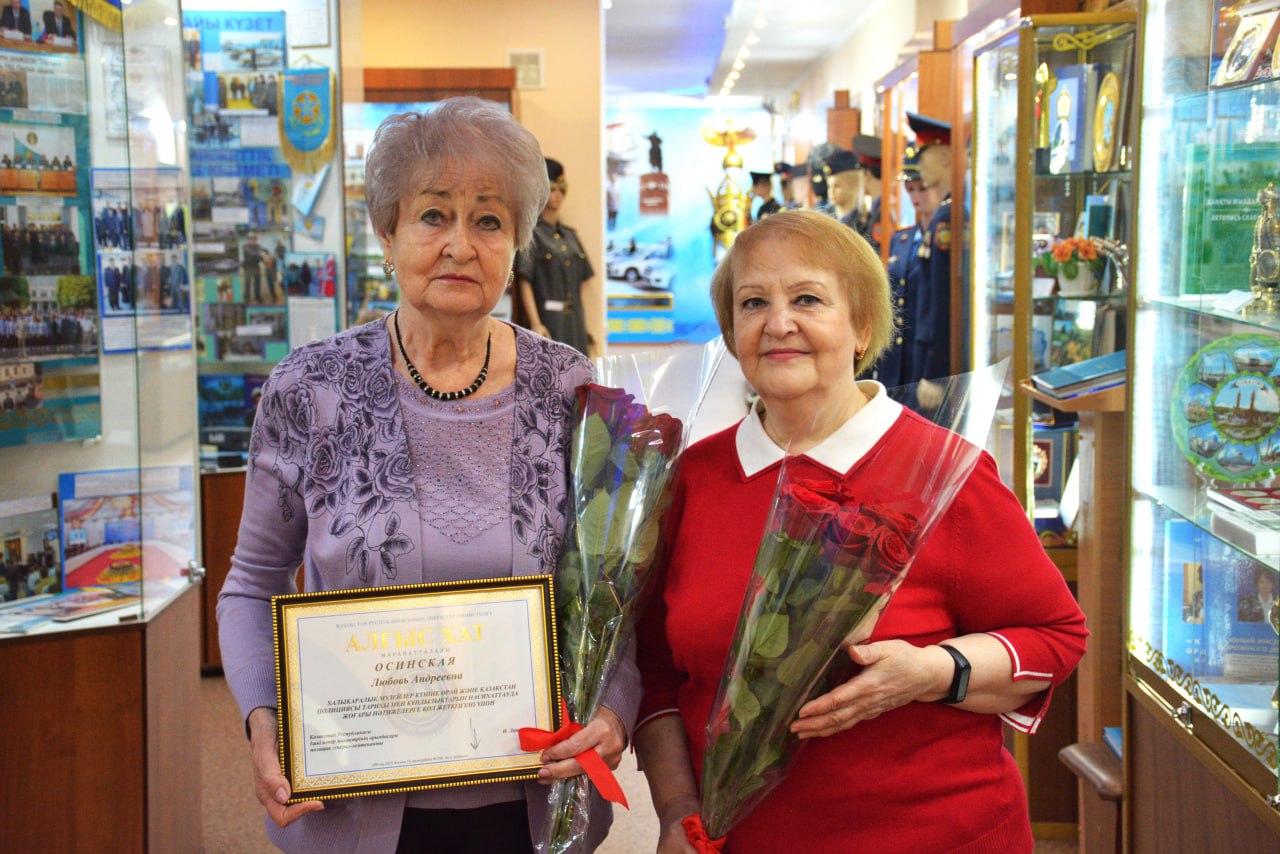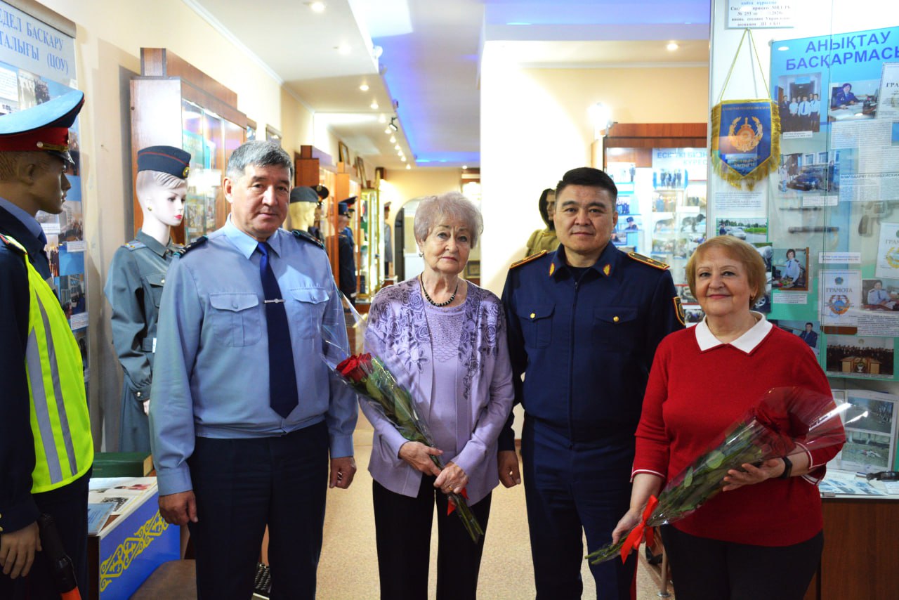 Халықаралық музей күні қарсаңында Солтүстік Қазақстан облысы полиция департаментінің бастығы полиция генерал-майоры Айдын Қабдұлдинов СҚО ПД музейінің қызметкерлері — меңгеруші Любовь Осинская мен қорларды сақтаушы Нина Бенграфты кәсіби мерекелерімен құттықтады.