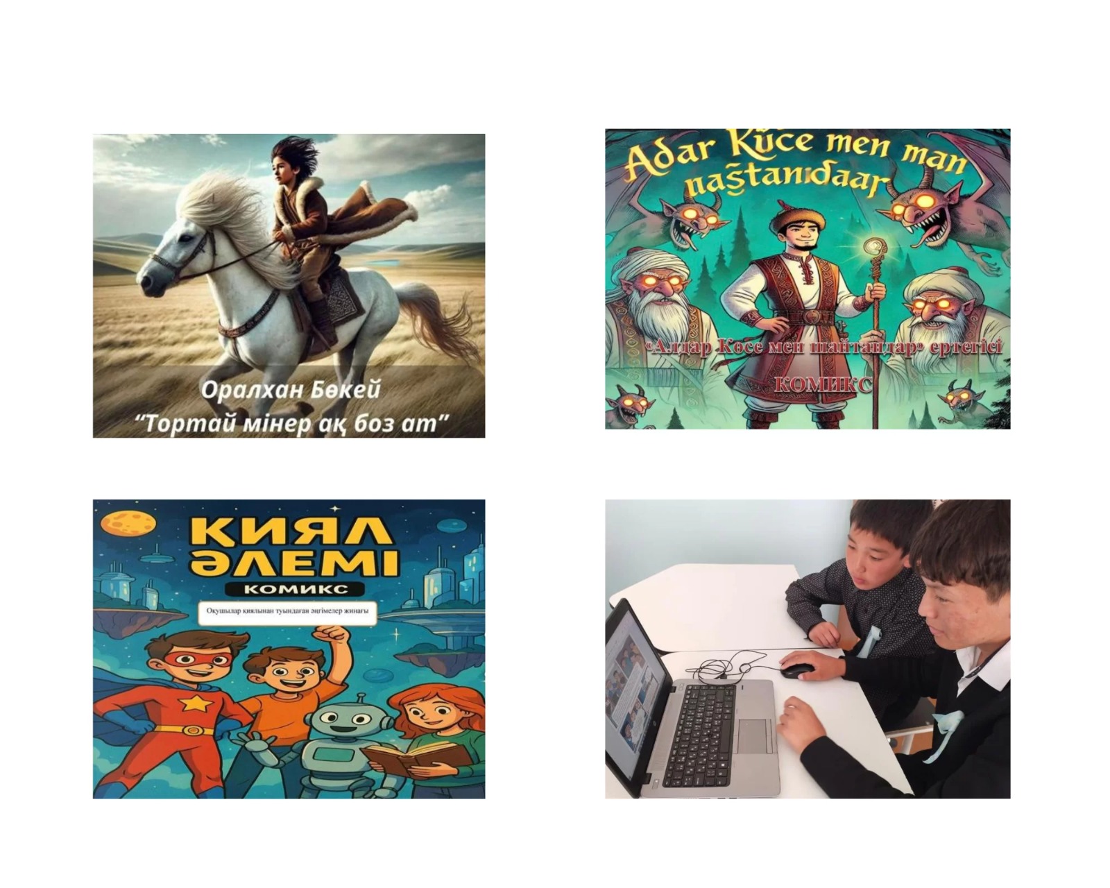 – Иә, «Қиял әлемі» – бұл бірлескен шығармашылық жұмыстың нәтижесі. Біз оқушылармен бірге сюжеттер ойлап тауып, кейіпкерлерді бірге таңдадық. Оқушылар оқиғаны өз қиялдарынан жазды, мен оларға өз туындыларын комикс ретінде бейнелеуді үйреттім.