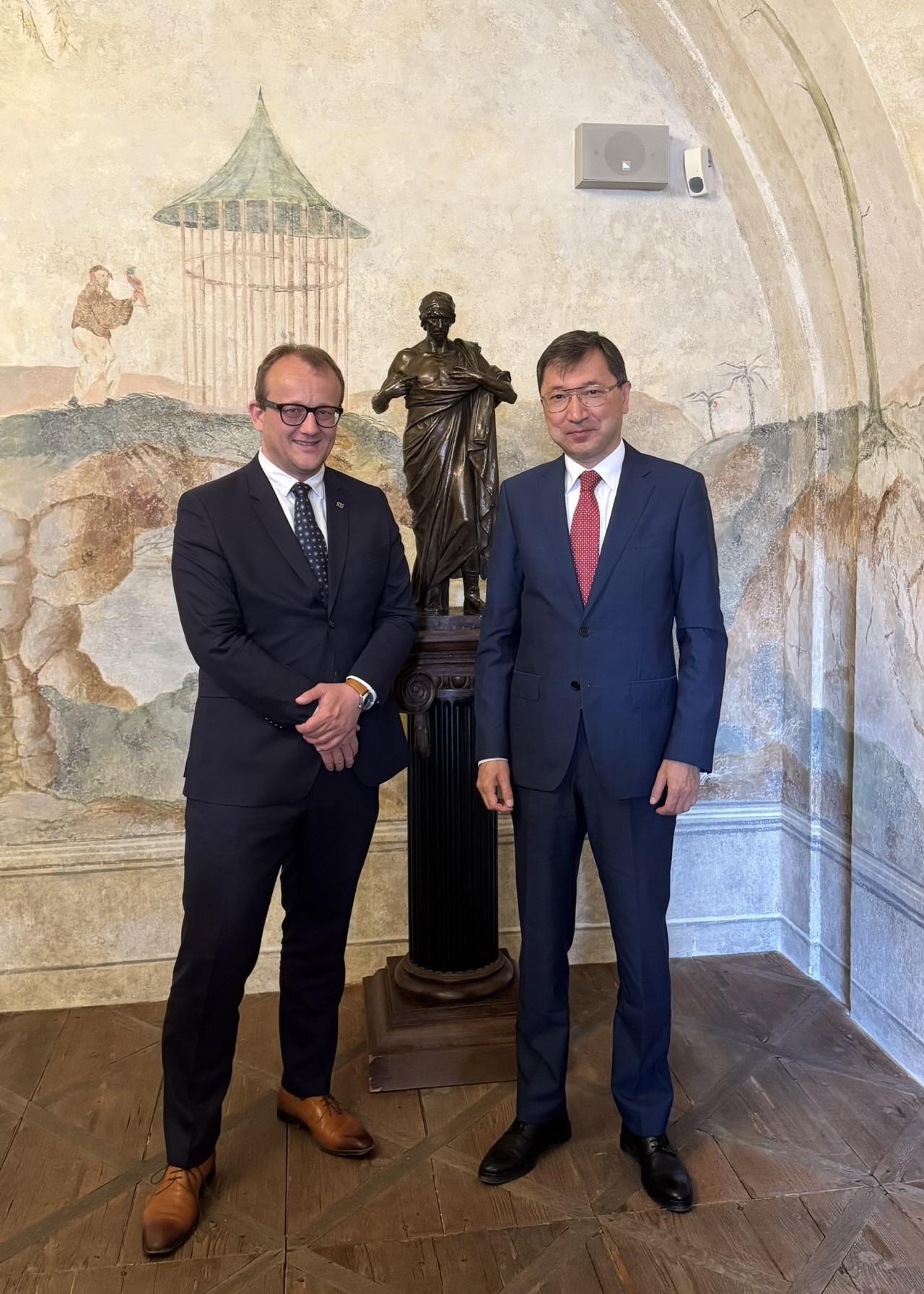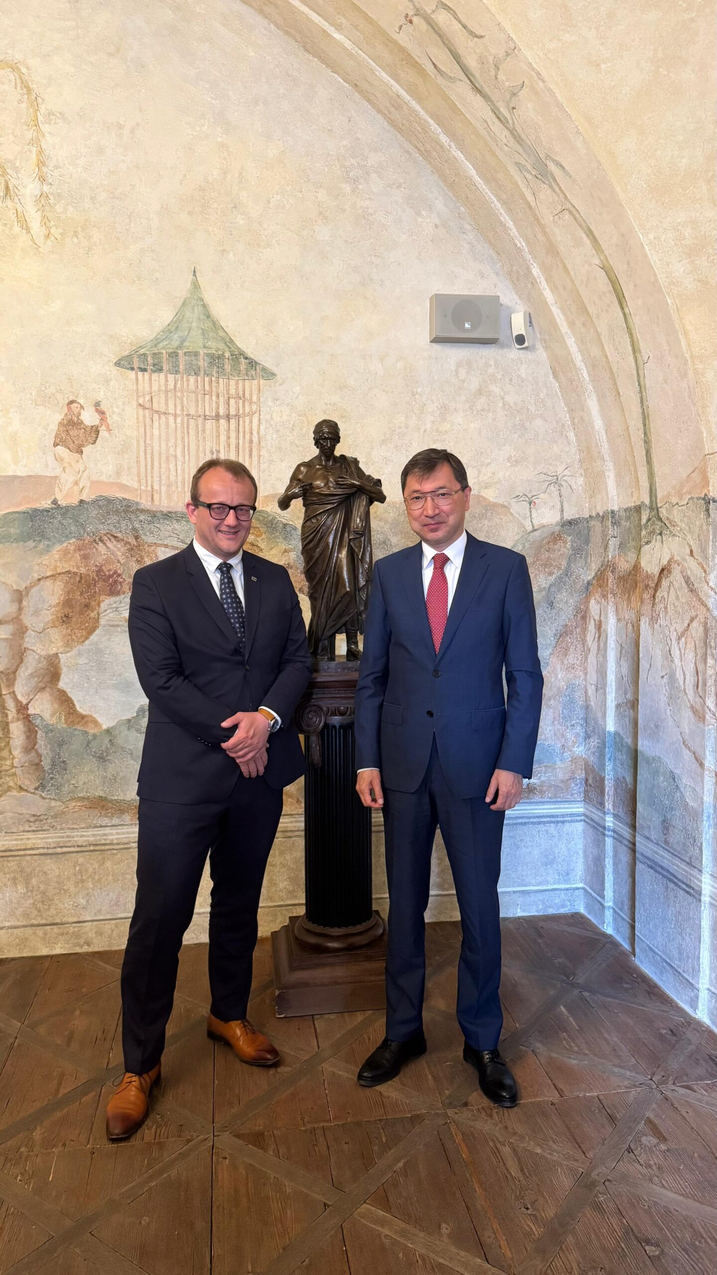 Прага, 2025 жылғы 15 мамыр – Қазақстан Республикасының Чех Республикасындағы Елшісі Бақыт Дүйсенбаев Чех Республикасының Ұлттық кітапханасының Бас директоры Томаш Фолтынмен кездесу өткізді.