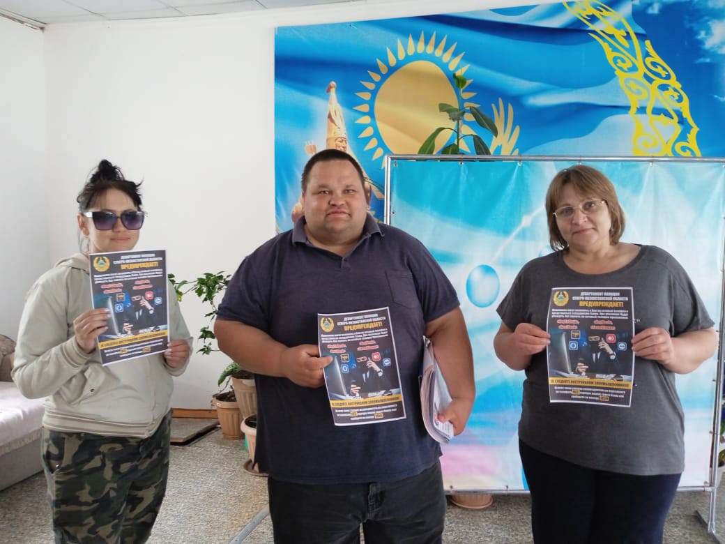 16.05.2025 жылы Ломоносов ауылдық округінің әкімі В.С. Барсуковпен Урожайное ауылының тұрғындары арасында интернет-алаяқтық бойынша брошюралар таратылды, қамту 84 адамды құрады.