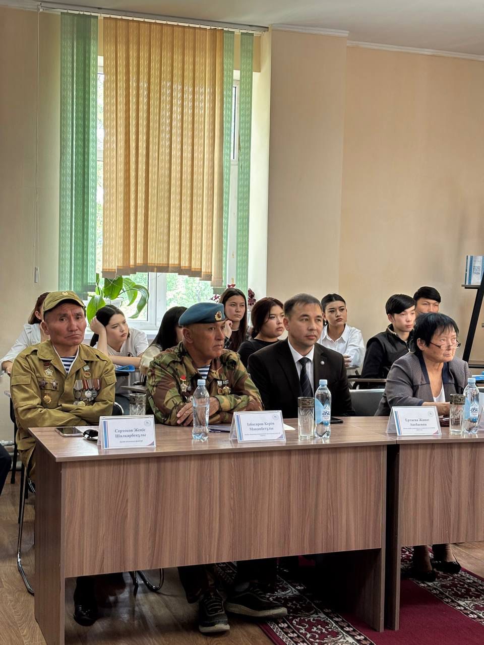 Кездесу барысында Б.Момышұлының мұрасына арналған «Адалдық сағаты» бейнедәрісінің көрсетілімі ұйымдастырылып, жастарға патриоттық тәрбие берудің маңыздылығы, сапалы білім алудағы табандылық әрі адалдық қасиетін бойға сіңірудің артықшылықтары түсіндіріліп, батыр бабалар ерлігіне тағзым ету – бүгінгі ұрпақтың басты мақсаты екені айтылды.