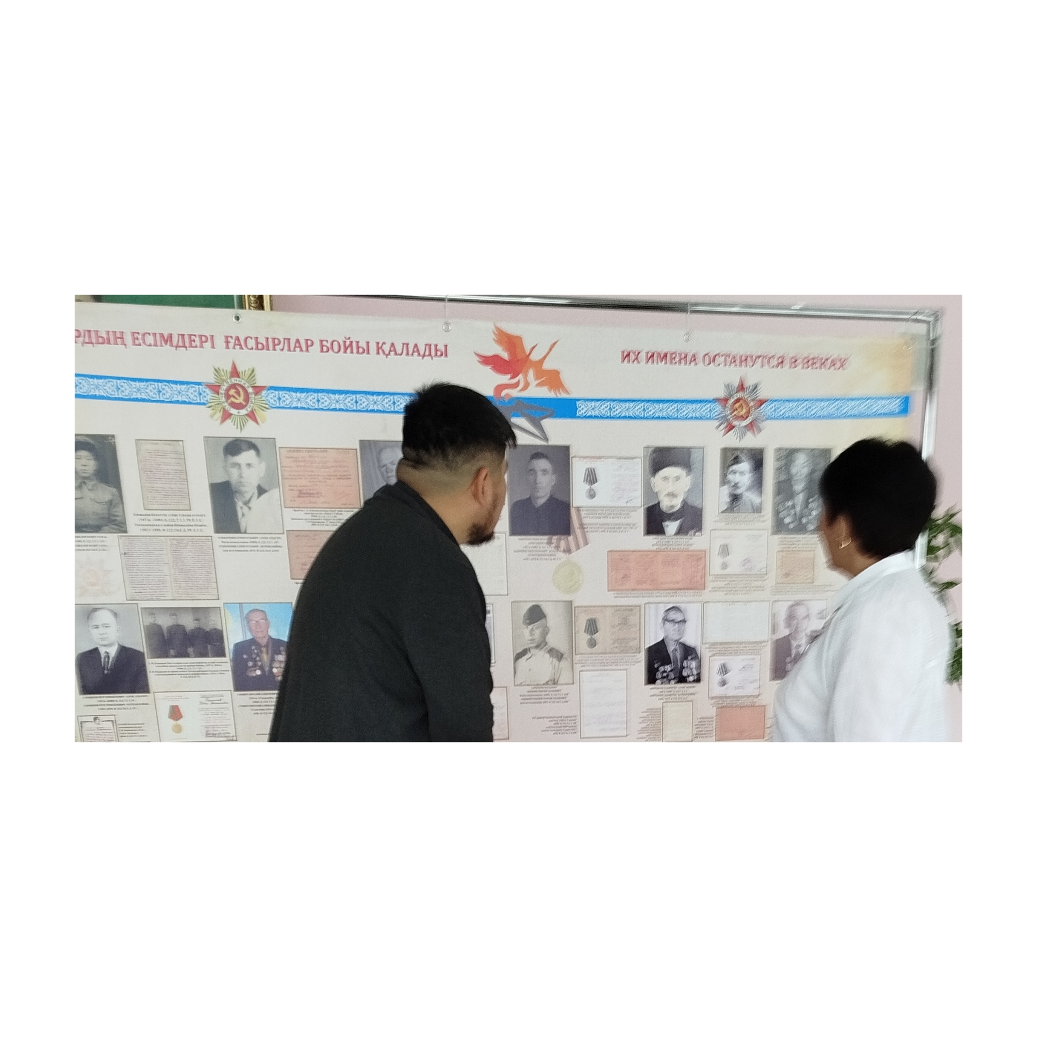 Көрменің көлемі 63 экспонаттан тұрады, олар екі жылжымалы планшеттерге орналастырылған. Көрмеде Әулиекөл ауданының Ұлы Отан соғысына қатысушыларының жеке тектік құжаттары ұсынылды: Михаил Васильевич Адамович; Николай Евтихович Гурба, Иван Иванович Демченко; Мырқайдар Шаяхметұлы Жумасов; Абдолла Ахметұлы Исниязов; Алдаберген Каскин; Вахит Кенжалин; Семен Кузьмич Кушнаренко; Иван Яковлевич Наконечный; Иван Петрович Наприенко; Ағадыл Нұғманов; Қалимолда Омаров; Петр Михайлович Паршиков; Виталий Алексеевич Стовбур; Георгий Ананьевич Тихонов; Алдаберген Шеқтыбаев; Сатыбалды Хасенов. Көрменің мақсаты – Ұлы Отан соғысындағы Жеңіске зор үлесін қосқан жерлестерміздің ерлігін есте сақтау.