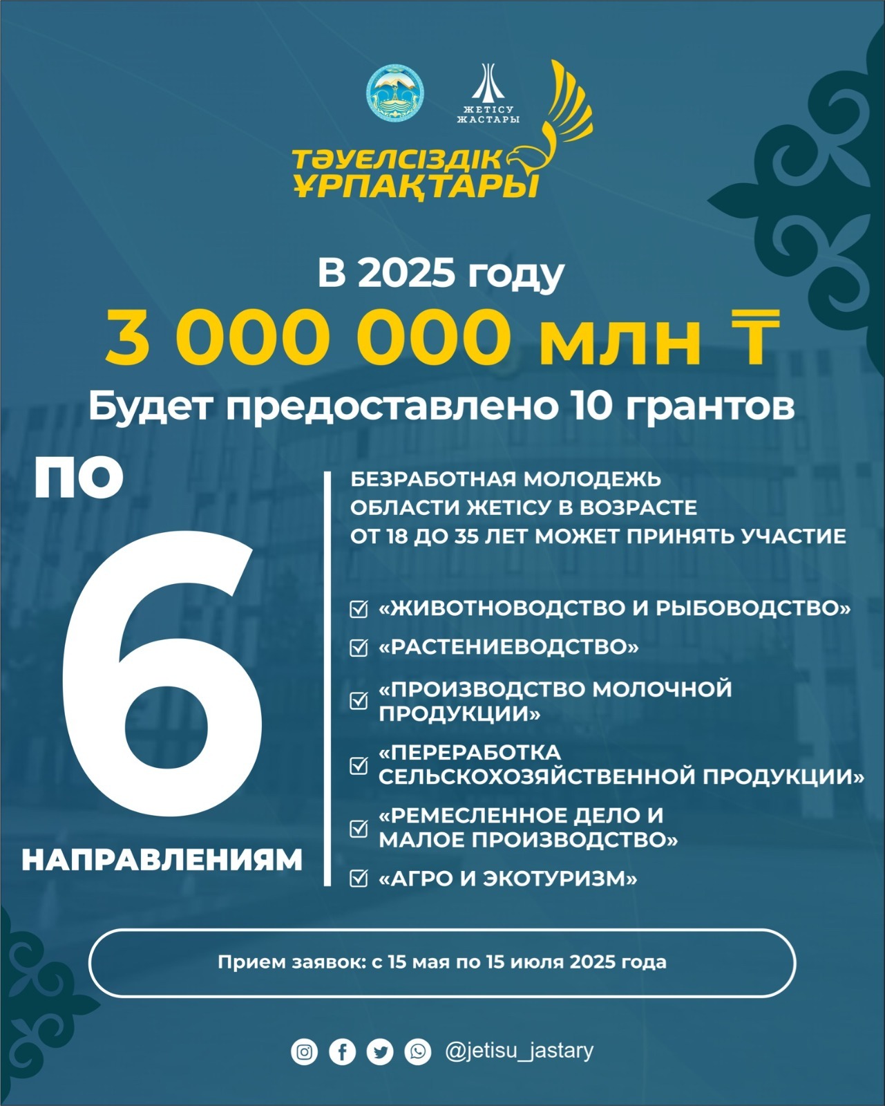 📅 Өтінім беру мерзімі: 15 мамыр – 15 шілде аралығы