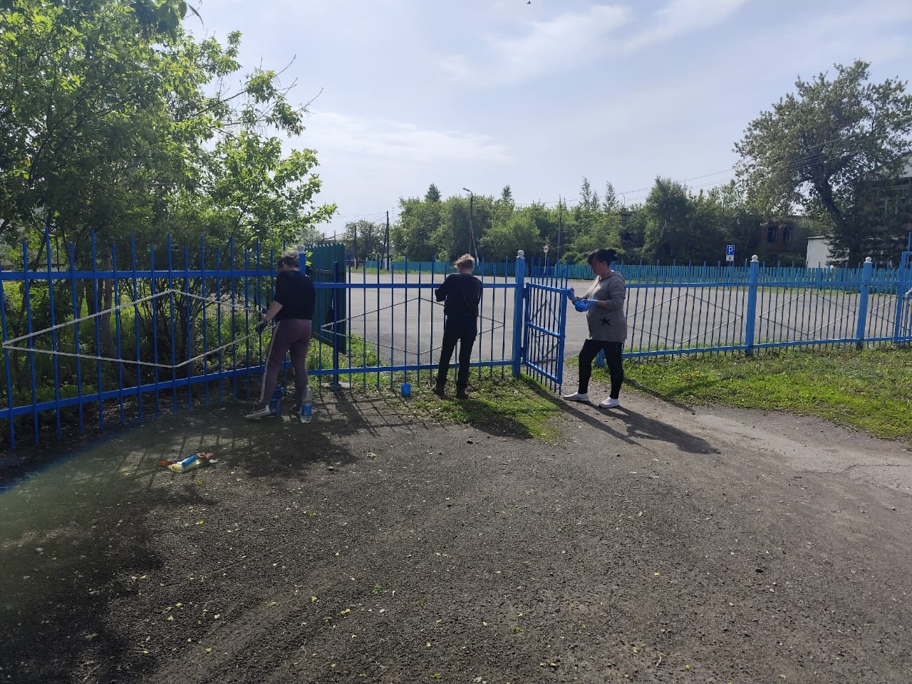 «Таза Қазақстан» ұлттық бағдарламасын жүзеге асыру аясында орталық алаңның қоршауы сырлануда
