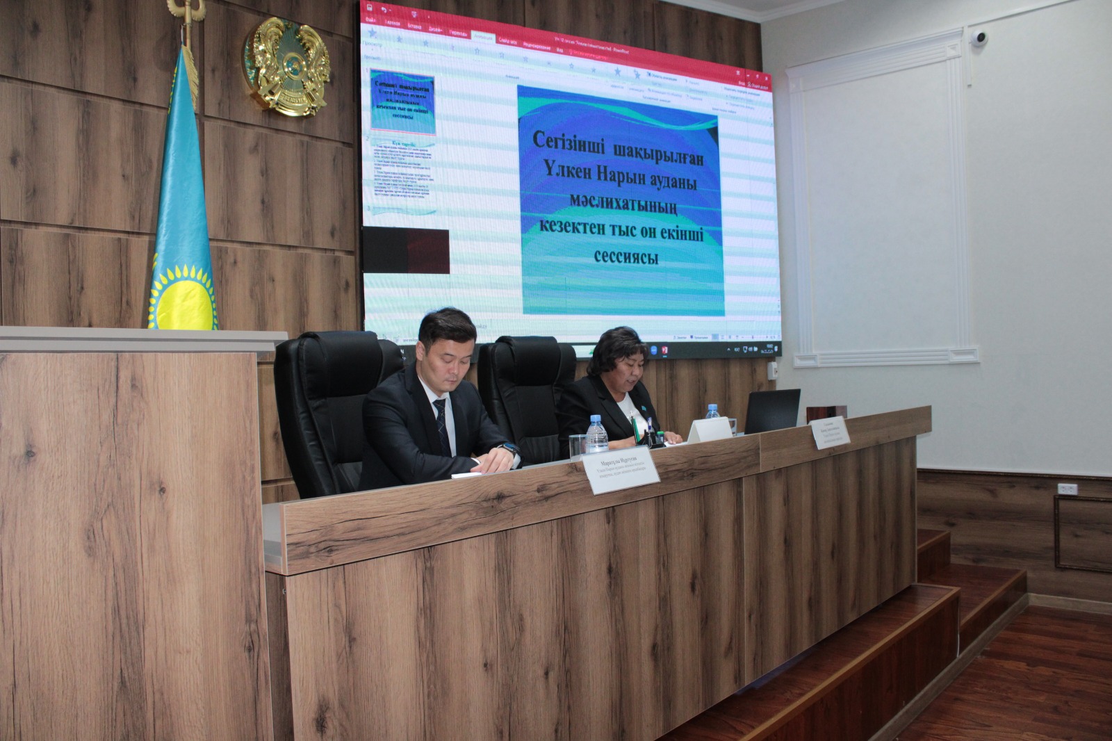 2025 жылғы 16 мамырда Үлкен Нарын ауданы мәслихатының кезектен тыс он екінші сессиясы өтті. Оған мәслихат депутаттарымен бірге аудан әкімінің міндетін атқарушы, аудан әкімінің орынбасары Нұртуған Маратұлы, тұрғын үй коммуналдық шаруашылық, жолаушылар көлігі және автомобиль жолдары бөлімі басшысының міндетін атқарушы, Үлкен Нарын ауылдық округінің әкімдігі, бұқаралық-ақпарат құралдарының өкілі қатысты. Мәслихат сессиясының отырысы онлайн режимде интернет желісінде трансляцияланды.