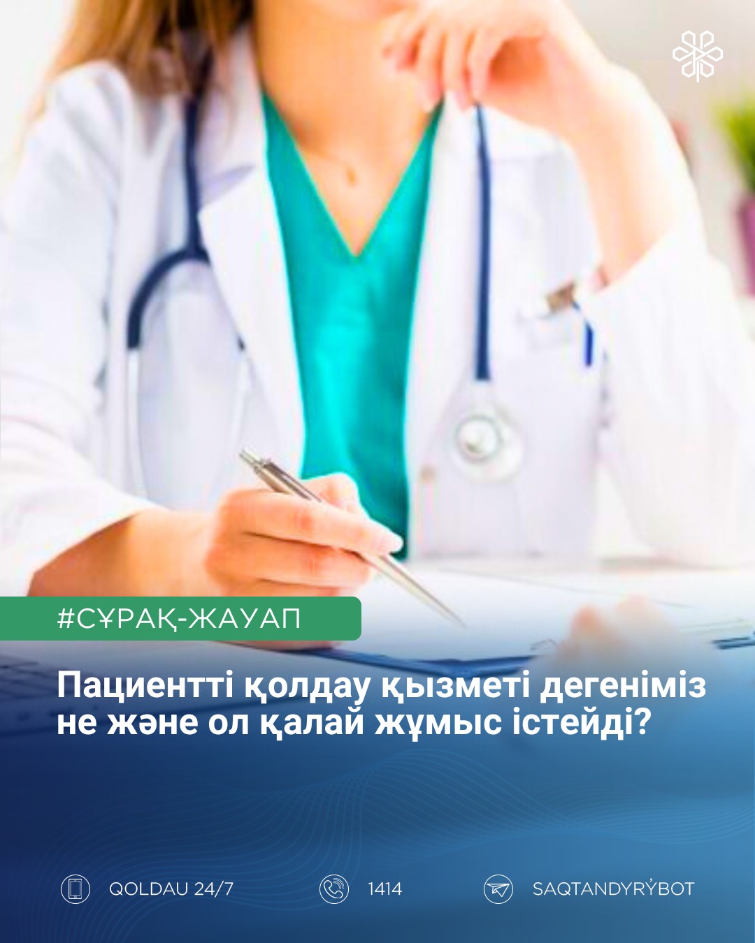 Пациентті қолдау қызметі пациенттердің медициналық қызметтерді алу барысында туындаған жағдайларды реттеумен айналысады. Оған пациенттердің өздері де, олардың туыстары да жүгіне алады.