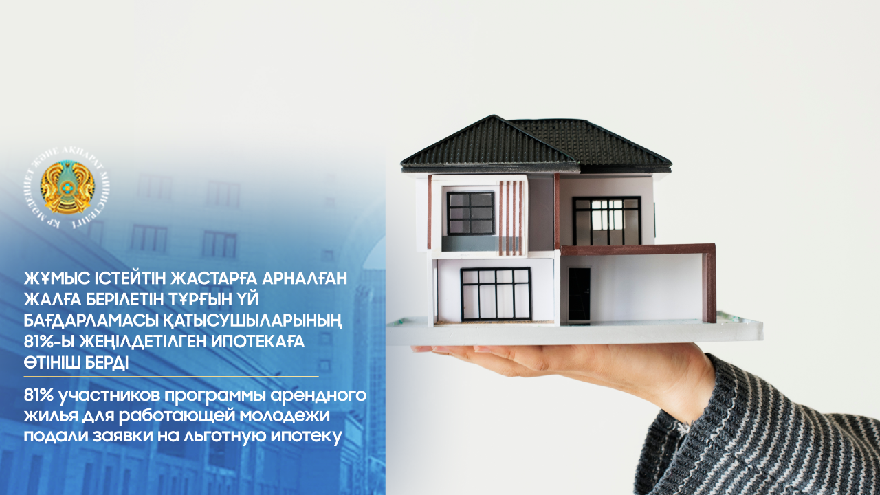 Жұмыс істейтін жастарға арналған жалға берілетін тұрғын үй бағдарламасы қатысушыларының 81%-ы жеңілдетілген ипотекаға өтініш берді