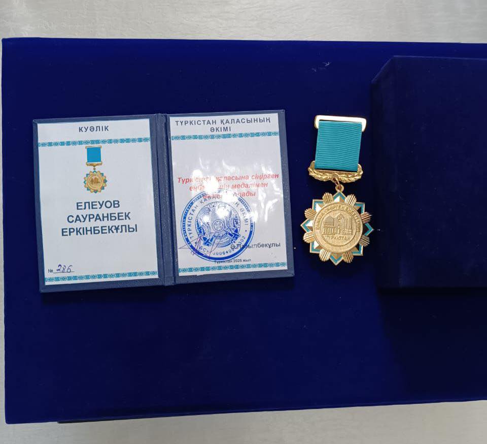 Мерейлі мерекесі қарсаңында қала әкімінің қаулысымен «Түркістан қаласына сіңірген еңбегі үшін» мерекелік медалімен марапатталды.