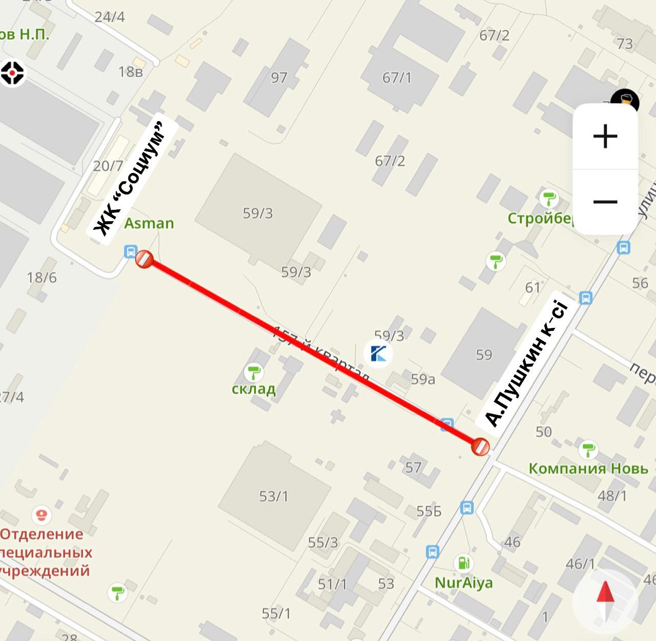 Астана қаласының Көлік және жол-көлік инфрақұрылымын дамыту басқармасы қала тұрғындары мен қонақтарын А. Пушкин көшесінен “Социум” ТК-не апаратын жолдың орташа жөндеу бойынша жұмыстардың жүргізілетіні туралы хабардар етеді. Осыған байланысты, ағымдағы жылғы 21 мен 23 мамыр аралығында көрсетілген учаскеде қозғалыс ішінара жабылатын болады. Осы уақытта автокөлік құралдарының қозғалысы екі бағытта бір жағынан кезең-кезеңімен ұйымдастырылады.