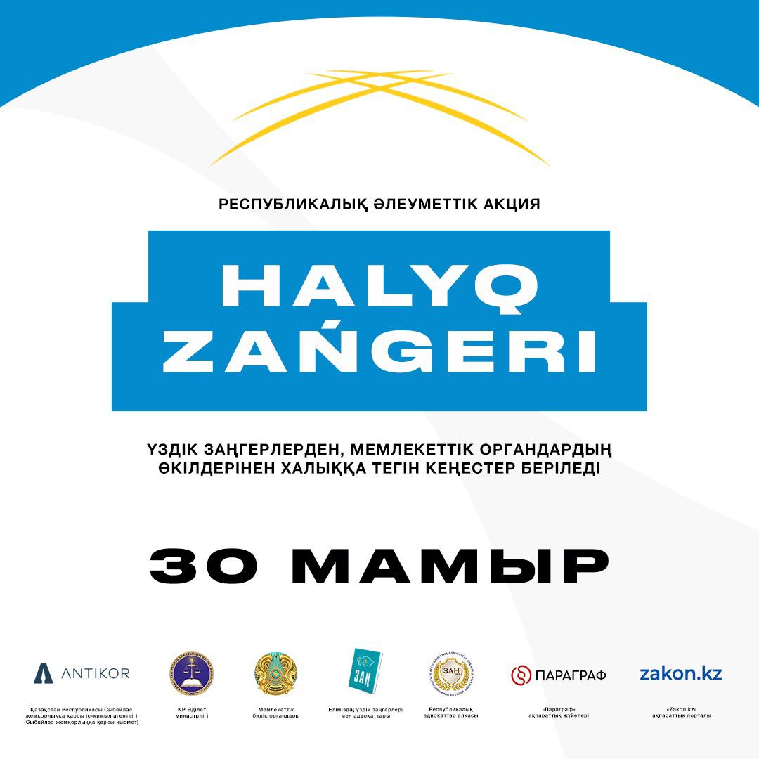 🕘 30 мамыр күні Қазақстанның барлық ірі қалаларында бір мезгілде «ХАЛЫҚ ЗАҢГЕРІ» республикалық акциясы басталады!