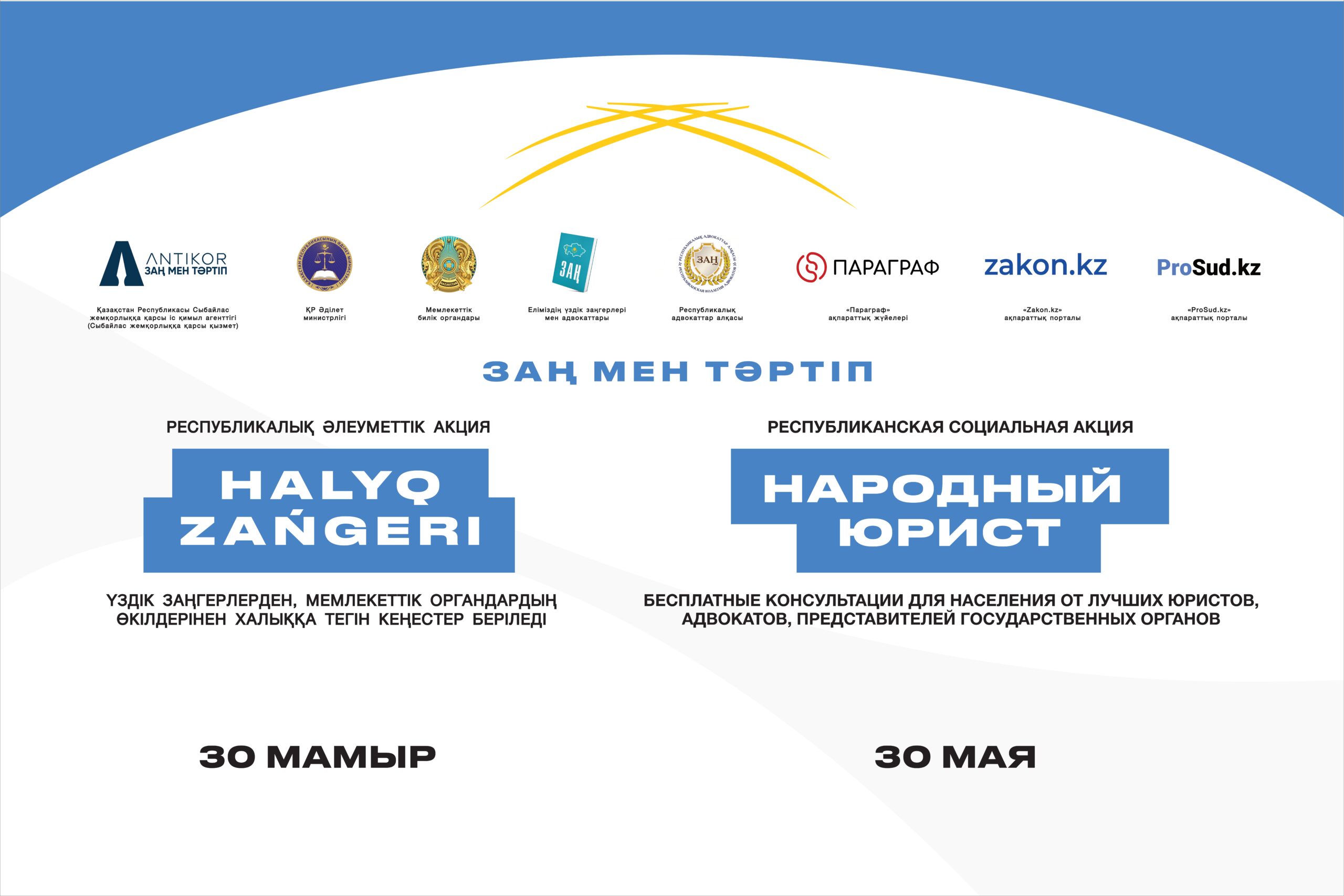 🔷2025 жылы 30 мамырда Қазақстан Республикасының барлық қалаларында «Халық заңгері» ауқымды жалпы республикалық акциясы бір мезгілде өтеді!